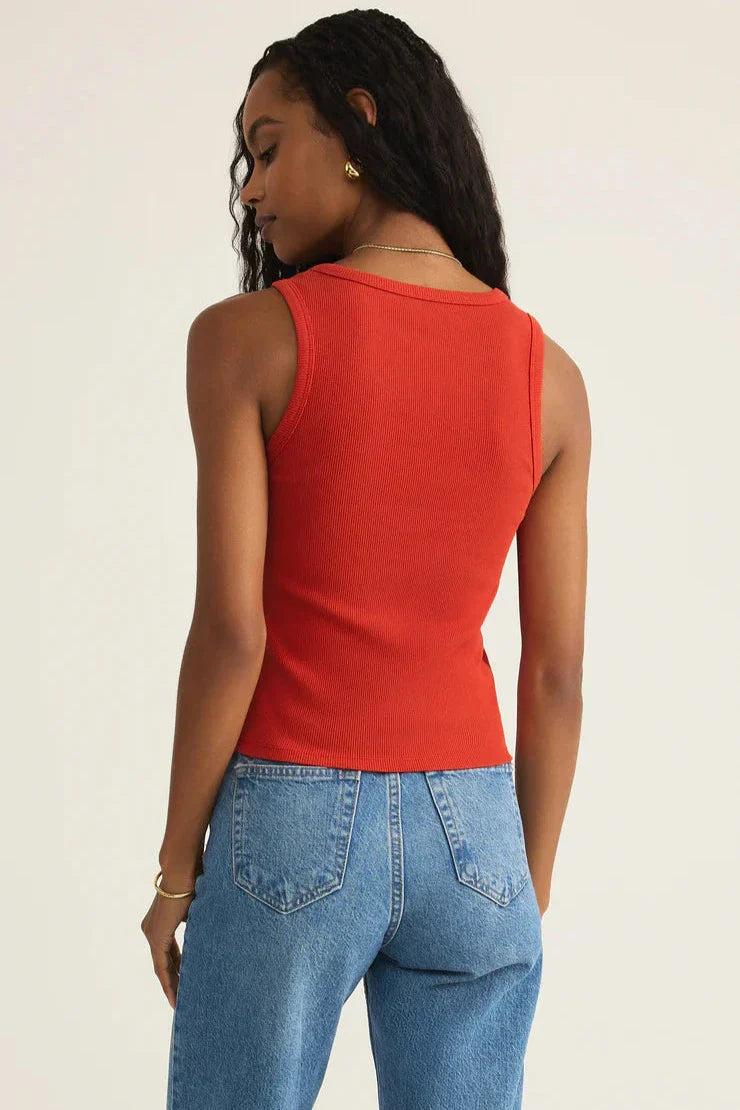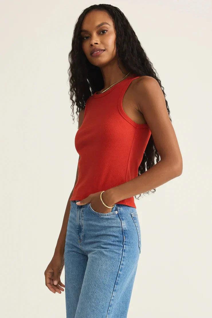 Add a vibrant twist to your basics with the Z Supply Hadley Tank in Red. Made from a soft, ribbed knit fabric, this fitted tank features a scoop neckline and just the right amount of stretch. Wear it tucked into high-waisted denim, layered under a lightweight button-up, or paired with your favorite lounge bottoms. It’s an elevated essential you’ll want in every color.
