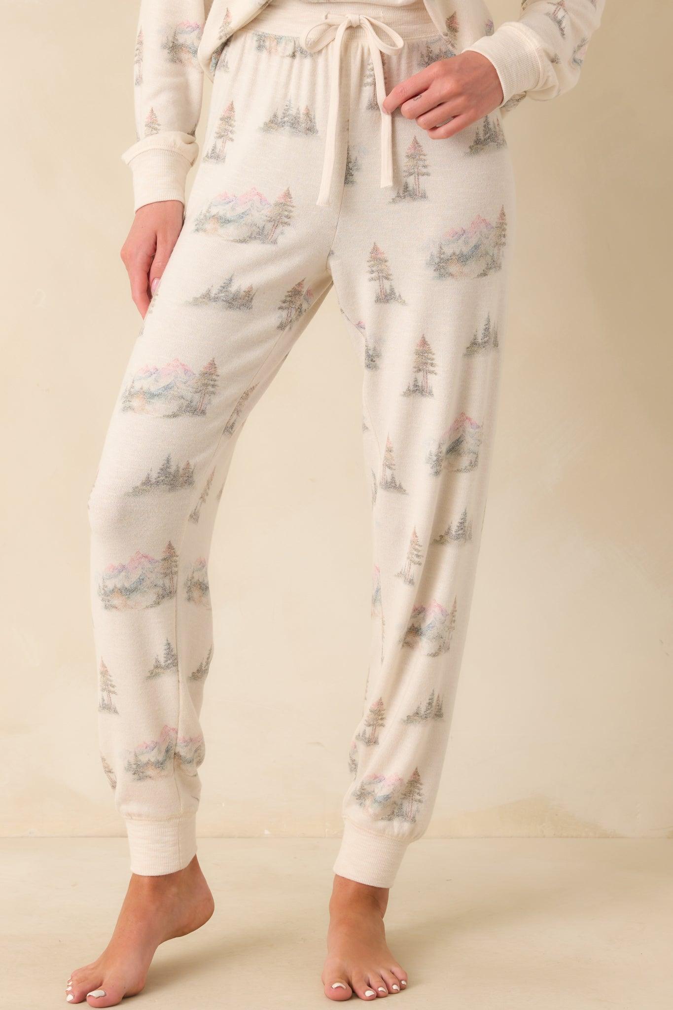 The Z Supply Ivory Multi Print Overnight Road Trip Joggers are perfect for winding down or hitting the road in total comfort. With a playful print and relaxed feel, they’re your excuse to stay cozy all day long. These ivory joggers feature a camp inspired print, a high rise elastic waistband, adjustable self-tie drawstring, elastic ankle cuffs, and a relaxed fit throughout.
