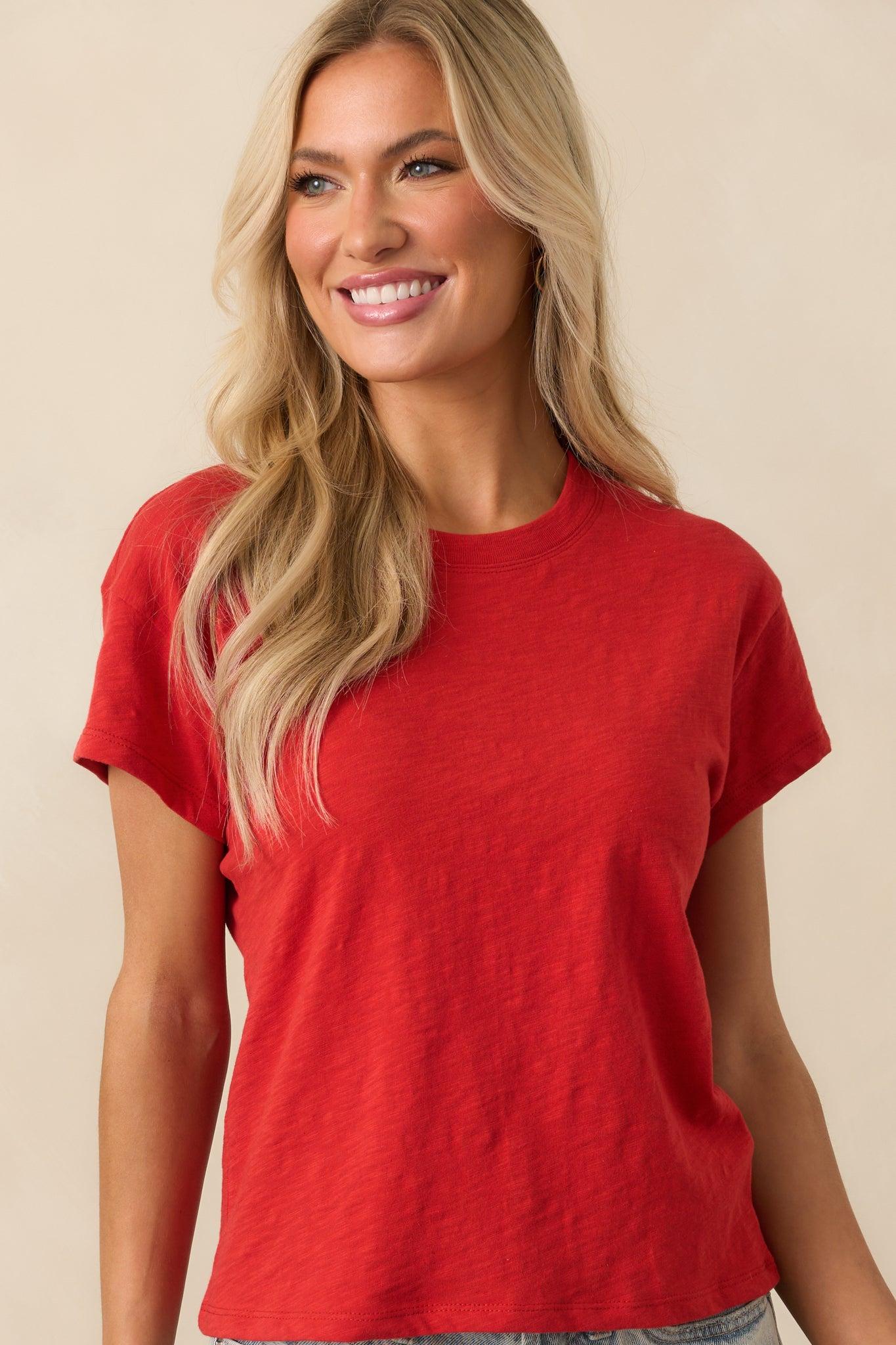 The Z Supply Red Cotton Modern Slub Tee is made for those feel-good days when everything just clicks—from your morning coffee to spontaneous plans. It's a laid-back favorite that brings a little extra energy to whatever makes you smile. This red tee features a crew neckline, short sleeves, and a lightweight jersey material.