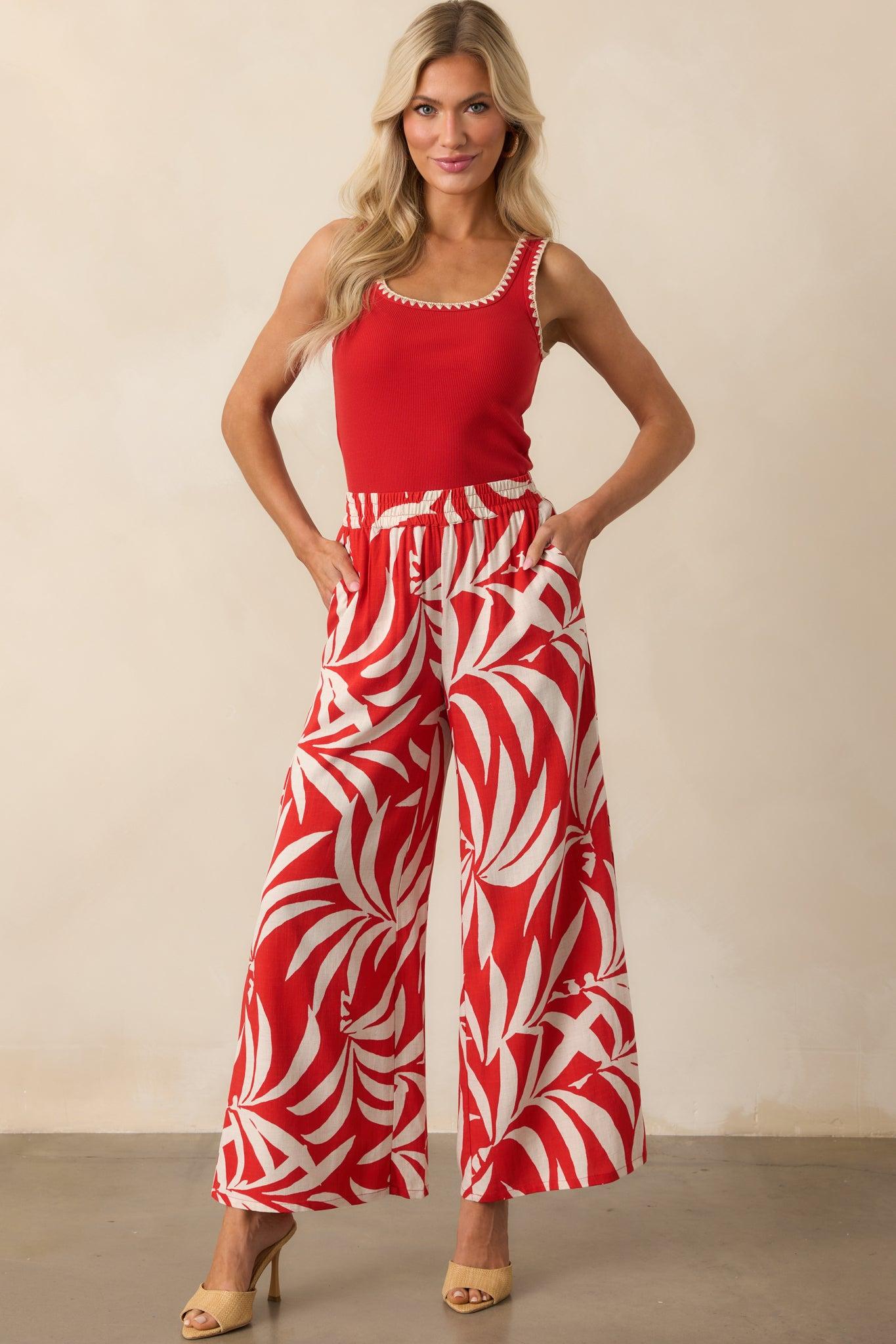 The Z Supply Red Cotton Jaidynn Whipstitch Rib Tank is for the in-between moments that end up meaning the most. It’s quietly intentional, made for feeling like yourself—whether you're out and about or staying close to home. This top features a red ribbed fabric, scoop neckline, sleeveless tank design, and beige whipstitch trim detailing.