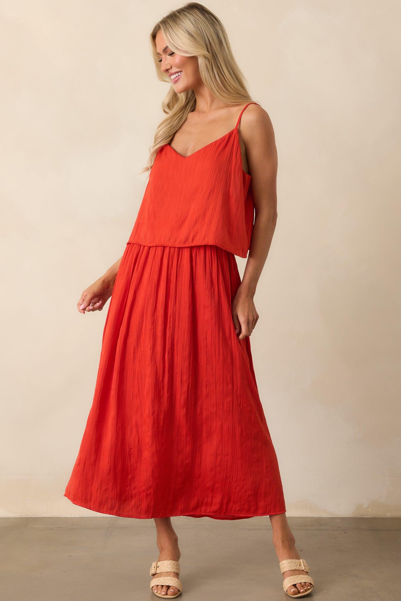 Z Supply Red Nicoline Crinkle Midi Skirt is made for days when you want your outfit to do just a little more. With texture, movement, and ease, it brings a touch of something special to even your simplest plans. This red skirt features a flowy fit, high rise, elastic waistband, a textured crinkle fabric, and a full lining.