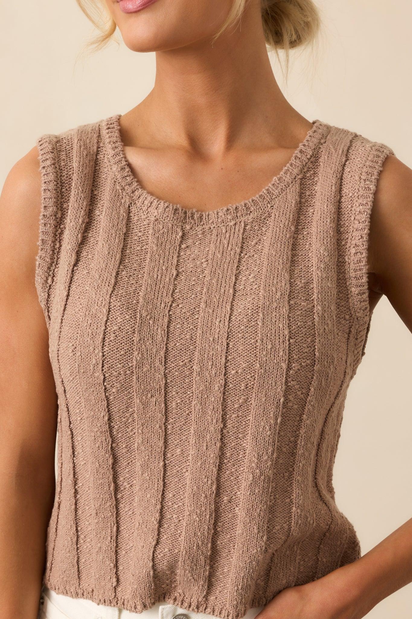The Z Supply Tan Iced Coffee Calan Rib Sweater Cropped Tank is a versatile piece that adds effortless style to your wardrobe. Perfect for casual days, it’s a go-to top for both comfort and easy pairing with any bottoms. This tan iced coffee top features a ribbed textured fabric, round neckline, sleeveless design, cropped length, and smaller ribs along the hemlines.