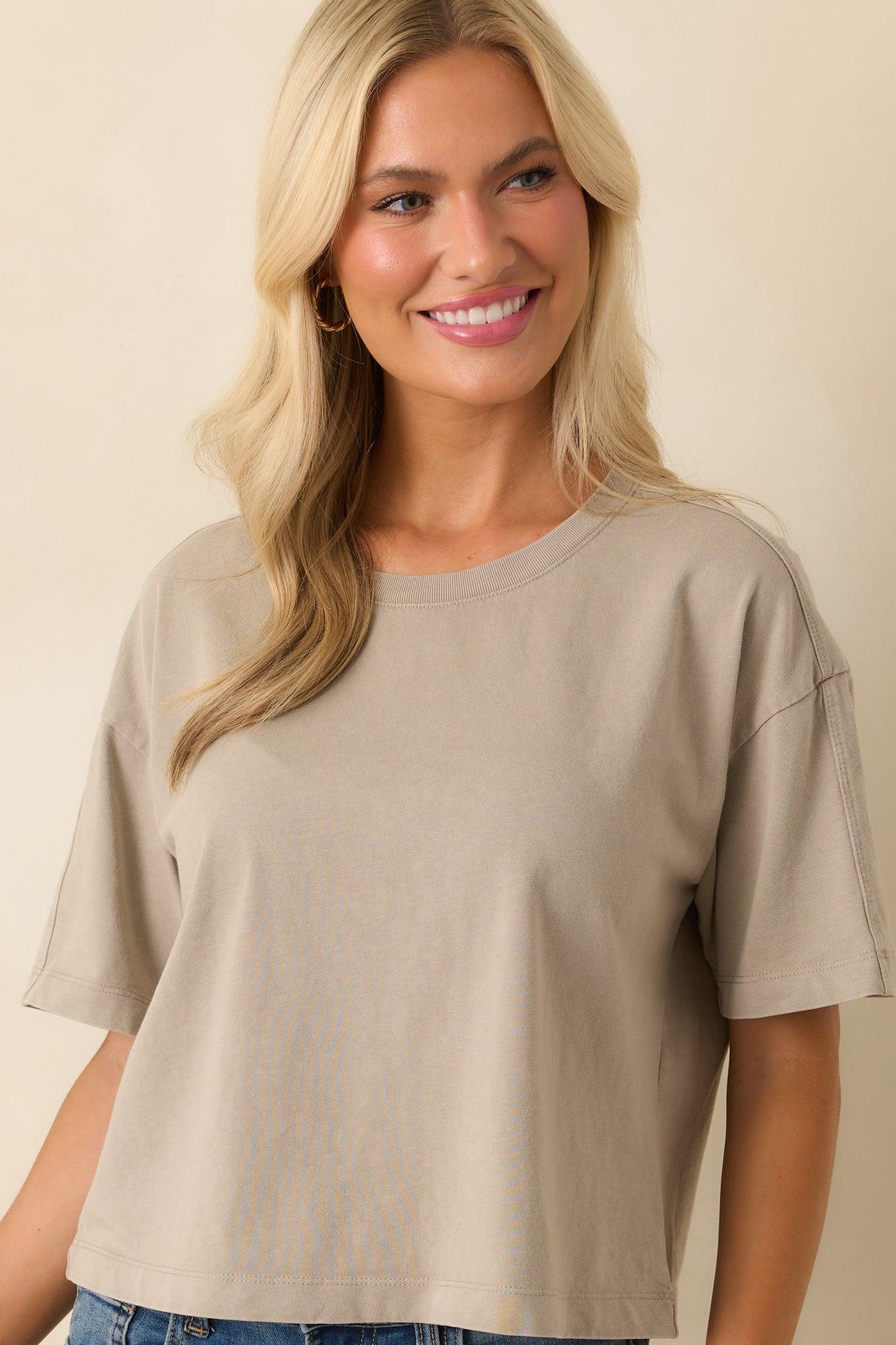 The Z Supply Taupe On The Go Cotton Jersey Tee is an easy favorite for busy days. Comfortable and effortless, it’s the kind of piece you can count on to keep up with your routine. This taupe tee features a lightweight cotton fabric, a crew neckline, short sleeves, relaxed fit, and slightly cropped length. 100% Cotton Unlined Machine Wash Cold Manufactured in China Designed in The USA Model is Wearing a Size X-Small