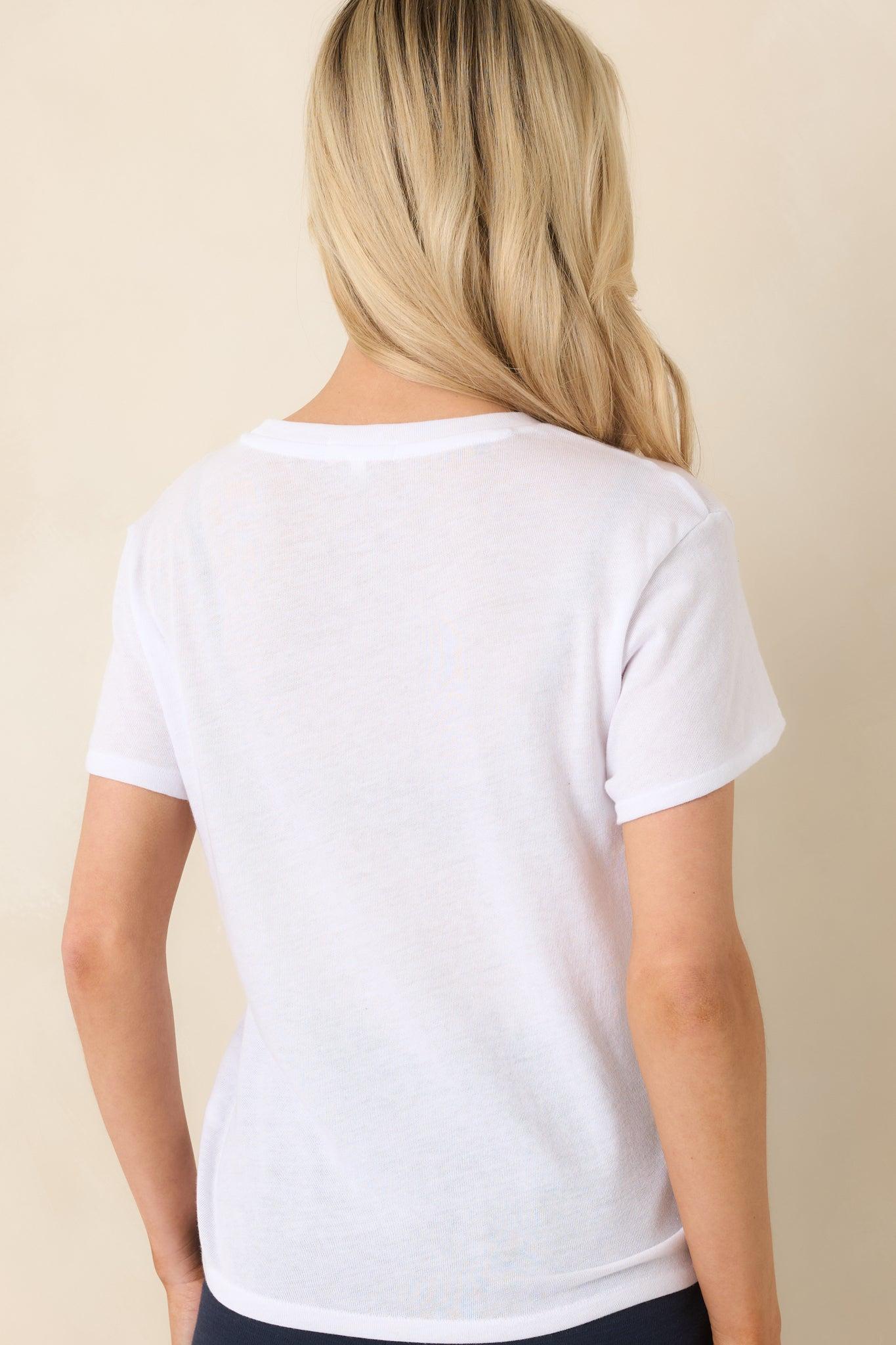 The Z Supply White Tourist Knit Jersey Tee is the definition of an everyday essential done right. Clean, classic, and endlessly versatile, it’s the kind of tee you’ll reach for on repeat — whether layered under a blazer, tucked into denim, or paired with relaxed lounge bottoms. Soft and uncomplicated, it brings that effortless, lived-in feel to any look. This white short sleeve tee features a classic crew neckline, relaxed silhouette, and subtly curved hem for easy styling. Crafted from lightweight knit jersey fabric, it offers a soft hand feel with breathable comfort and natural drape. 52% Cotton, 40% Polyester, & 8% Rayon Unlined Machine Wash Cold Manufactured in China Designed in The USA Model is 5'8" and Wearing a Size X-Small