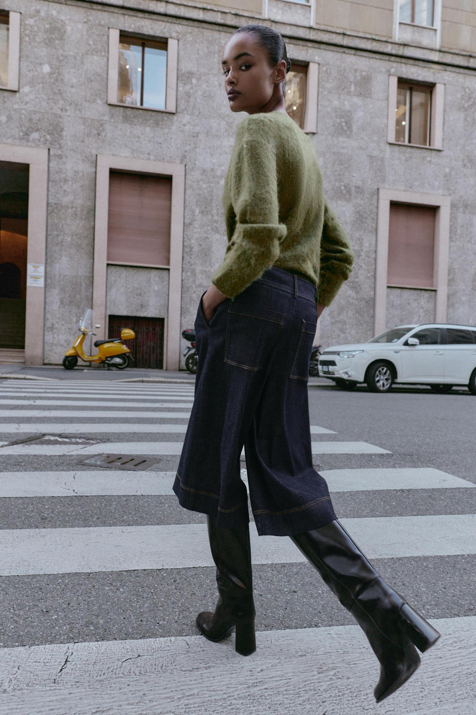 Z1975 HIGH-WAISTED DENIM SHORTS WITH TOPSTITCHING