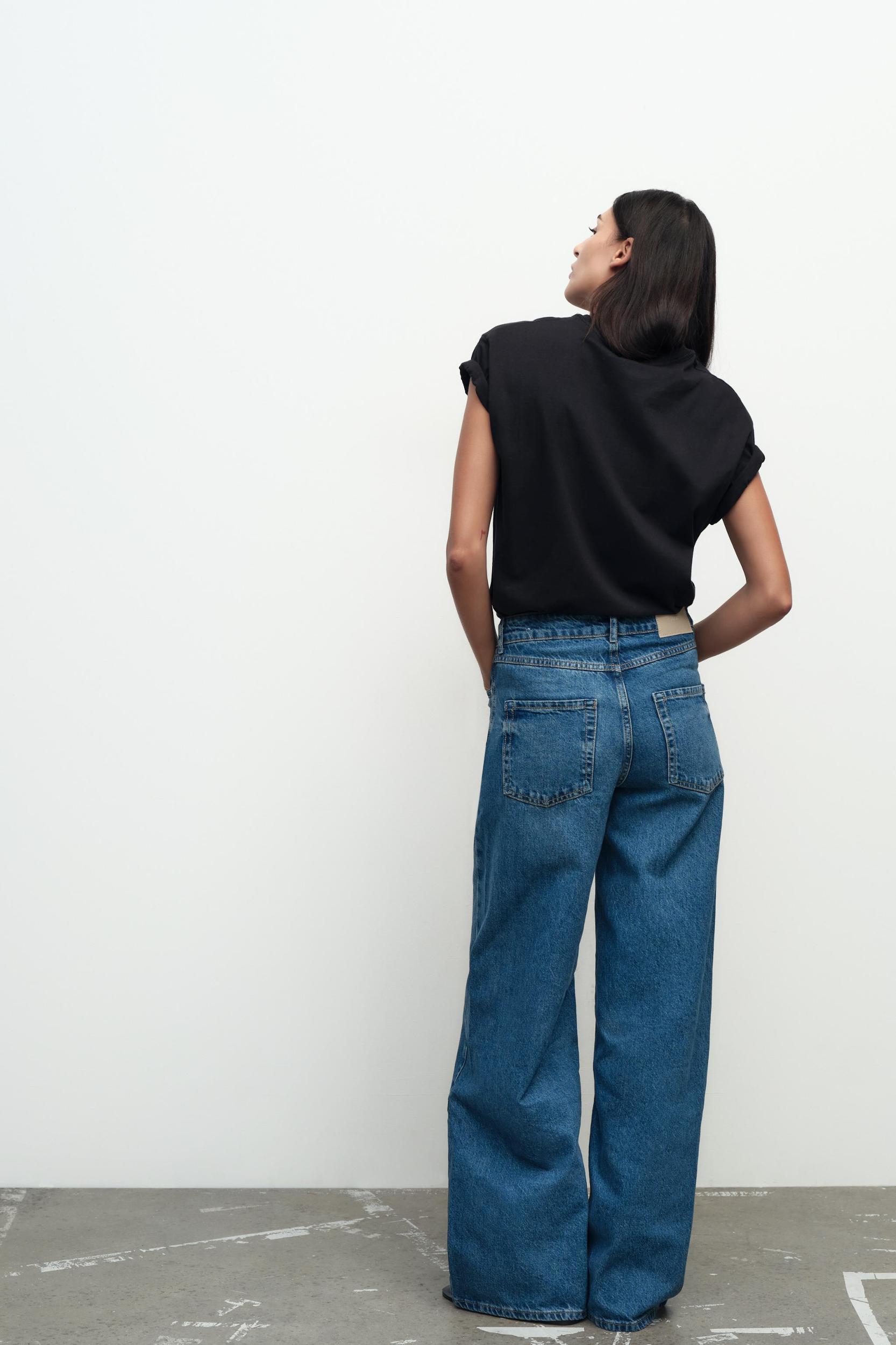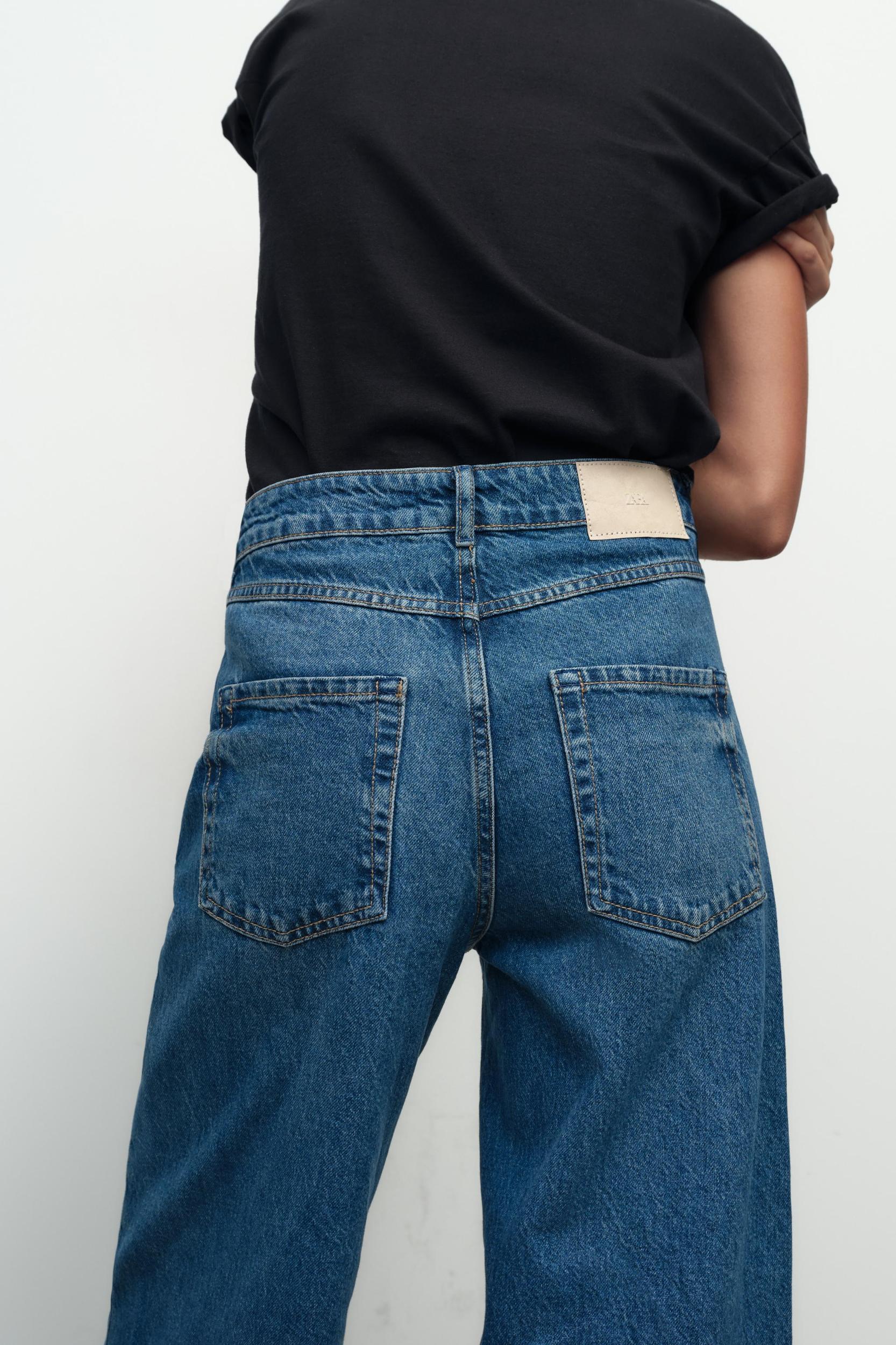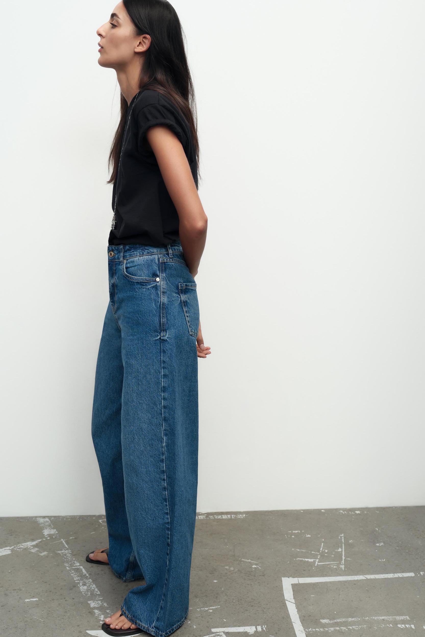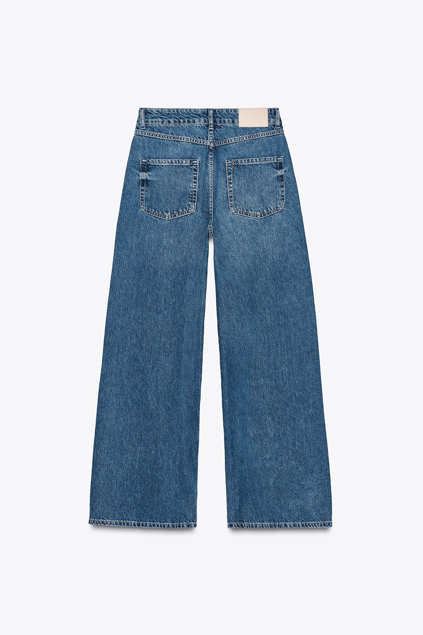 MID-RISE - WIDE LEG Mid-rise jeans with five pockets. Washed effect. Wide leg. Front zip and metal button closure.