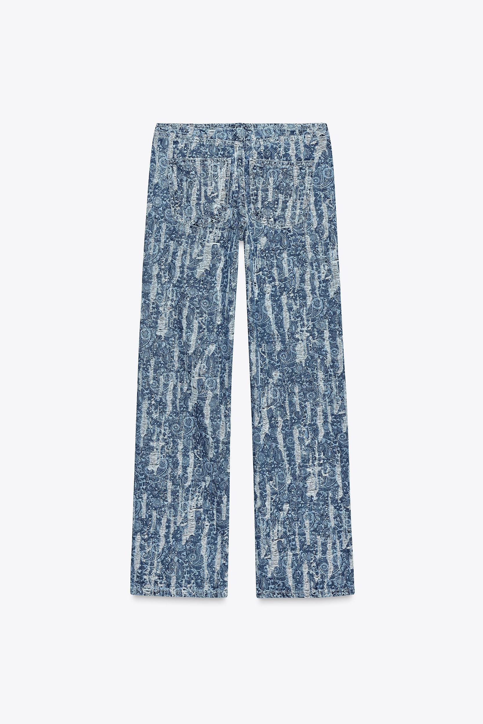 MID-RISE - STRAIGHT - WORN EFFECT Mid-rise jeans with front pockets and patch pockets on the back. Worn-effect fabric detail. Straight leg. Front zip and button closure.