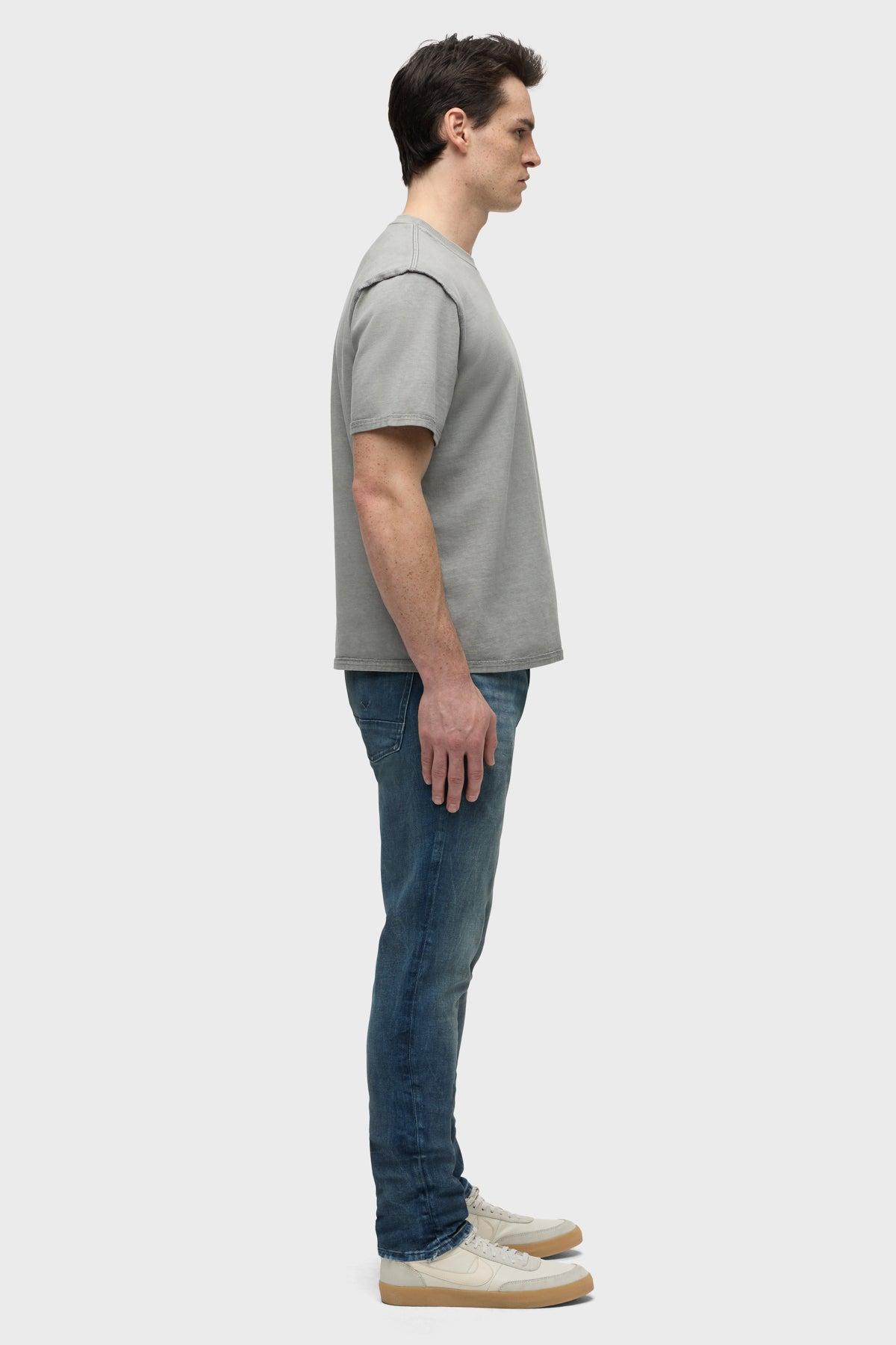 Description For a snug fit, look no further than our Zack Skinny Jean. Mid-rise, slim through the hip and thigh with a narrow leg and 34” inseam. Done in medium-dark Western wash with subtle black spray, the pair has classic five-pocket styling with tonal stitching for a clean look. Finished with a heavy back hem, edge grinding, dull nickel hardware and black leather back patch. Product Details Front Rise: 10.75", Leg Opening: 12", Inseam: 34"Model Height 6’1"Model wearing size 32 Fit & Care Content: 92% Cotton, 6% Elastomultiester, 2% ElastaneMachine wash cold with like colorsDo not bleachTumble dry low or hang to dry
