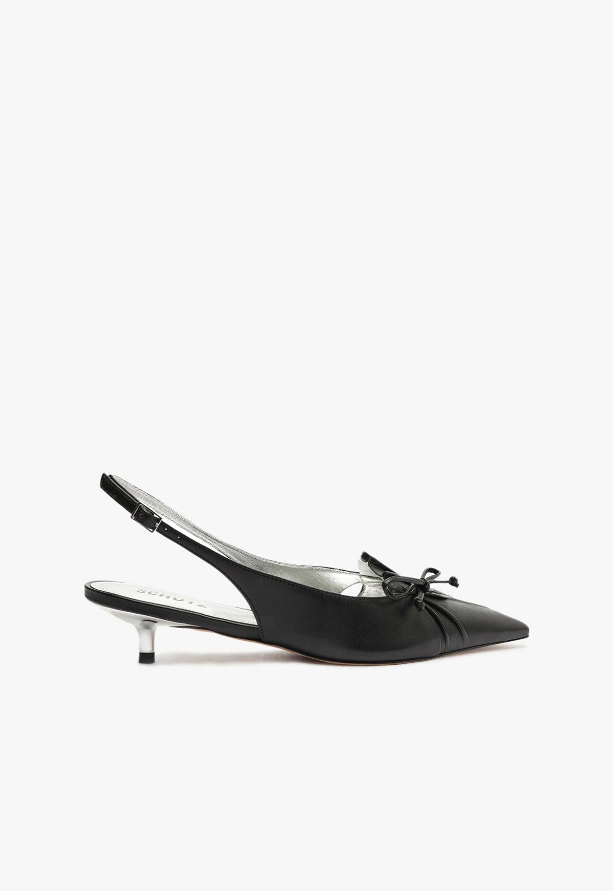 Made with quality Nappa Leather, The Zane Leather Pump is chic & comfortable due to its iconic kitten heel and adjustable slingback. This style showcases decorative detailing nestled on top of its pointed toe.Materials: Cow Leather Upper | Cow Leather OutsoleUpper Format: Regular Shaped UpperHeel Type: Low HeelHeel Style: StilettoToe Style: Pointed ToeClosure Type: Buckle UpCounter Type: ClosedHeel Height: 1,9 In | 50 mmSKU: S2189900010001