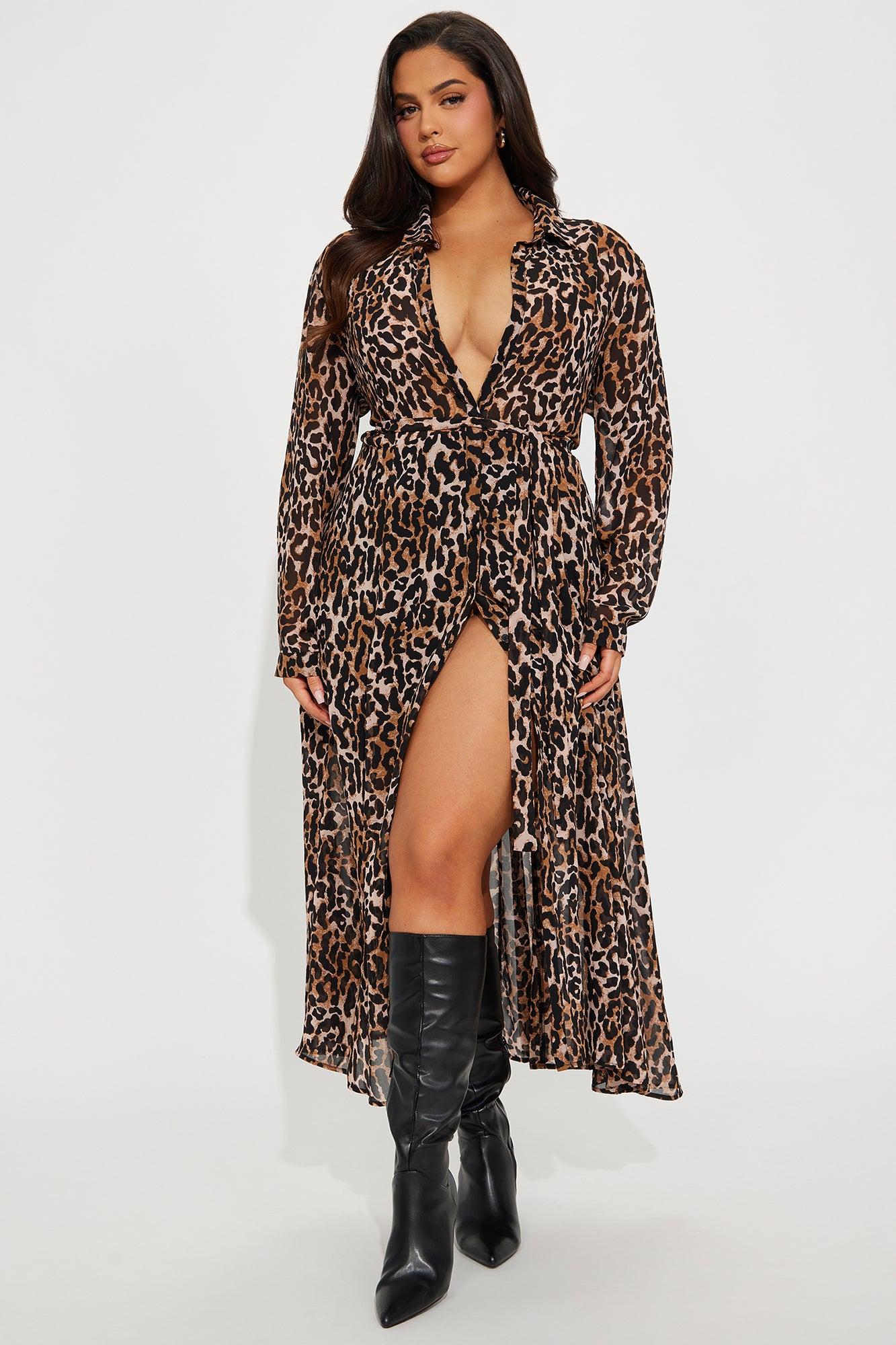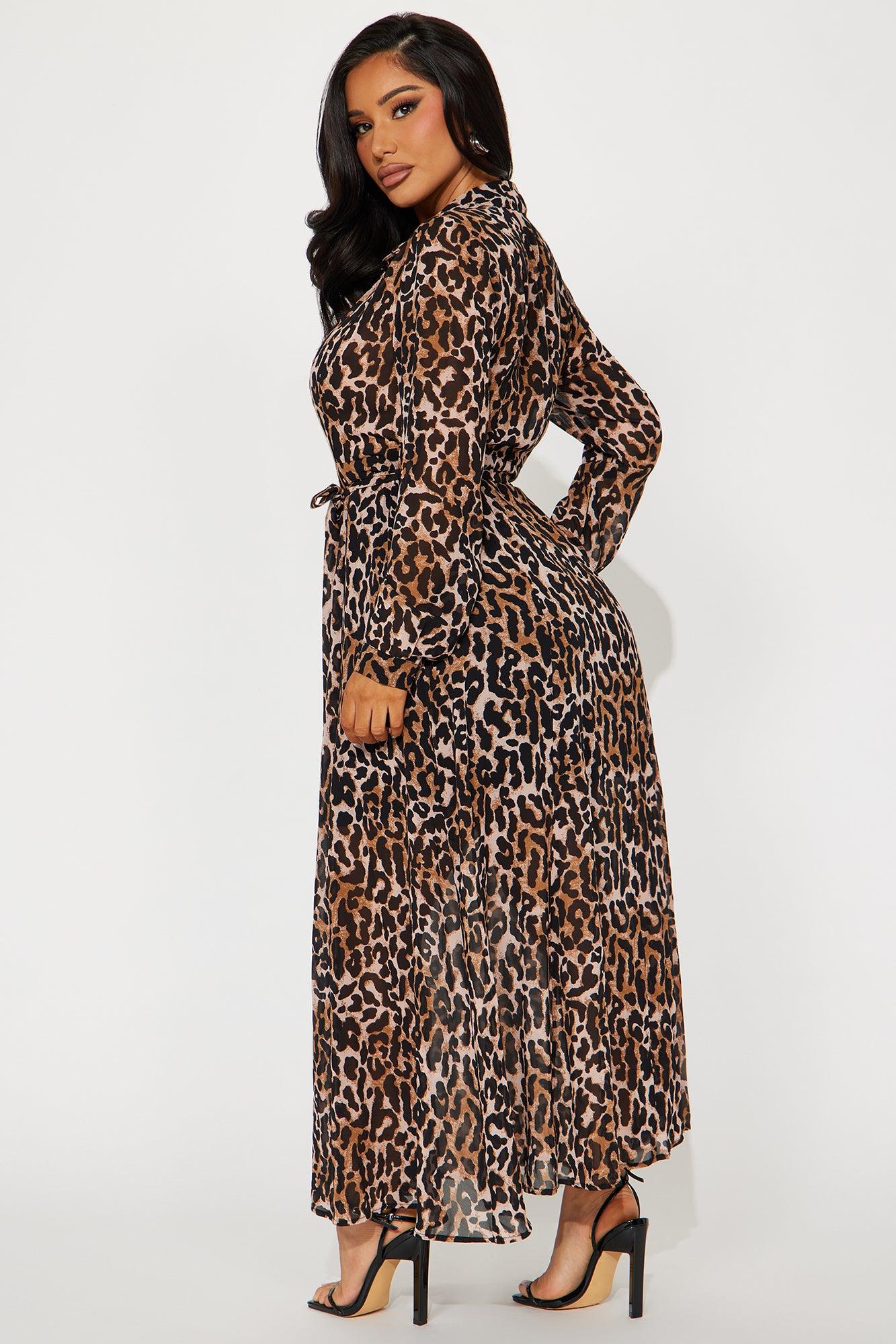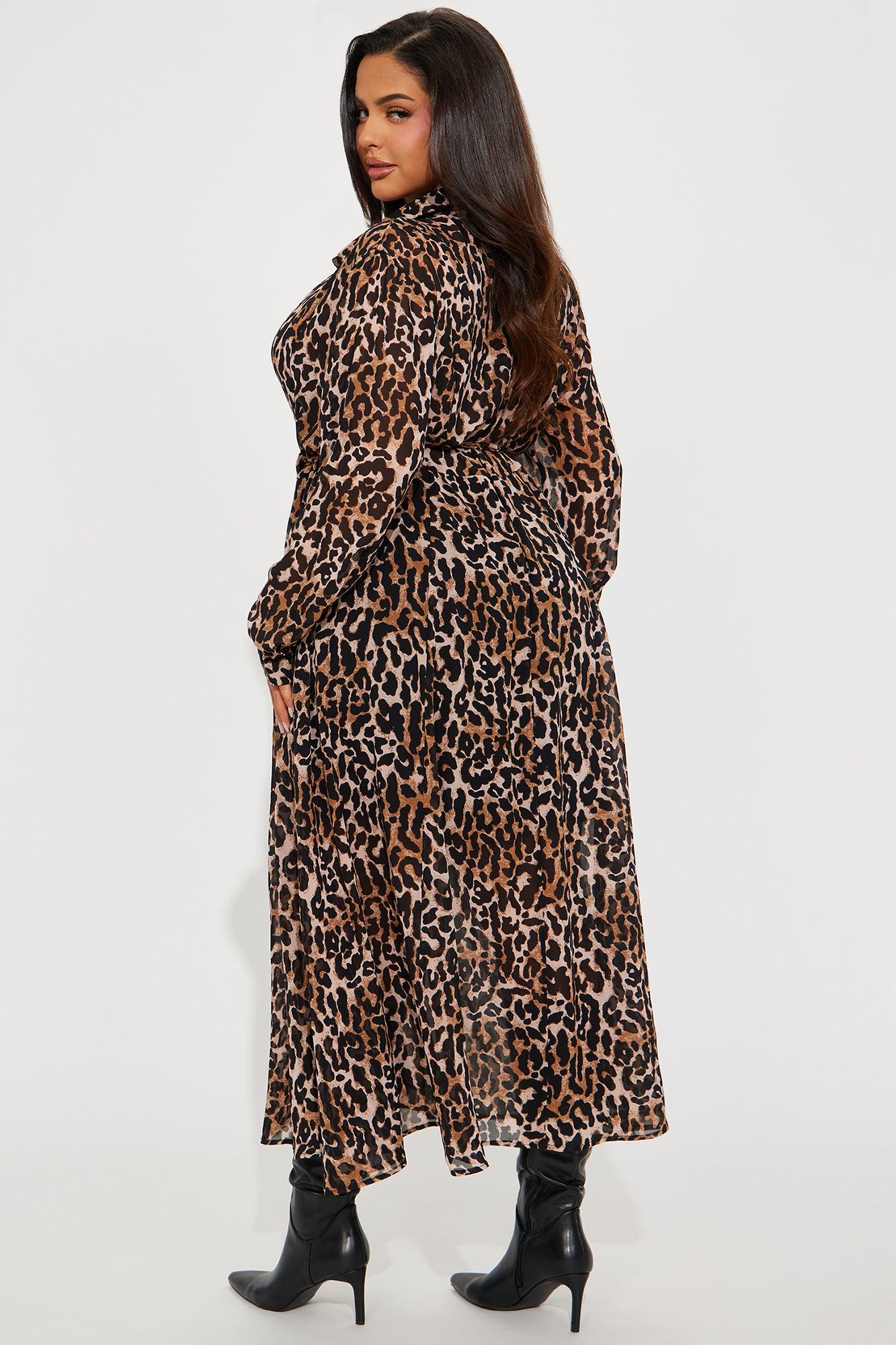 Zara Chiffon Midi Shirt Dress - Leopard