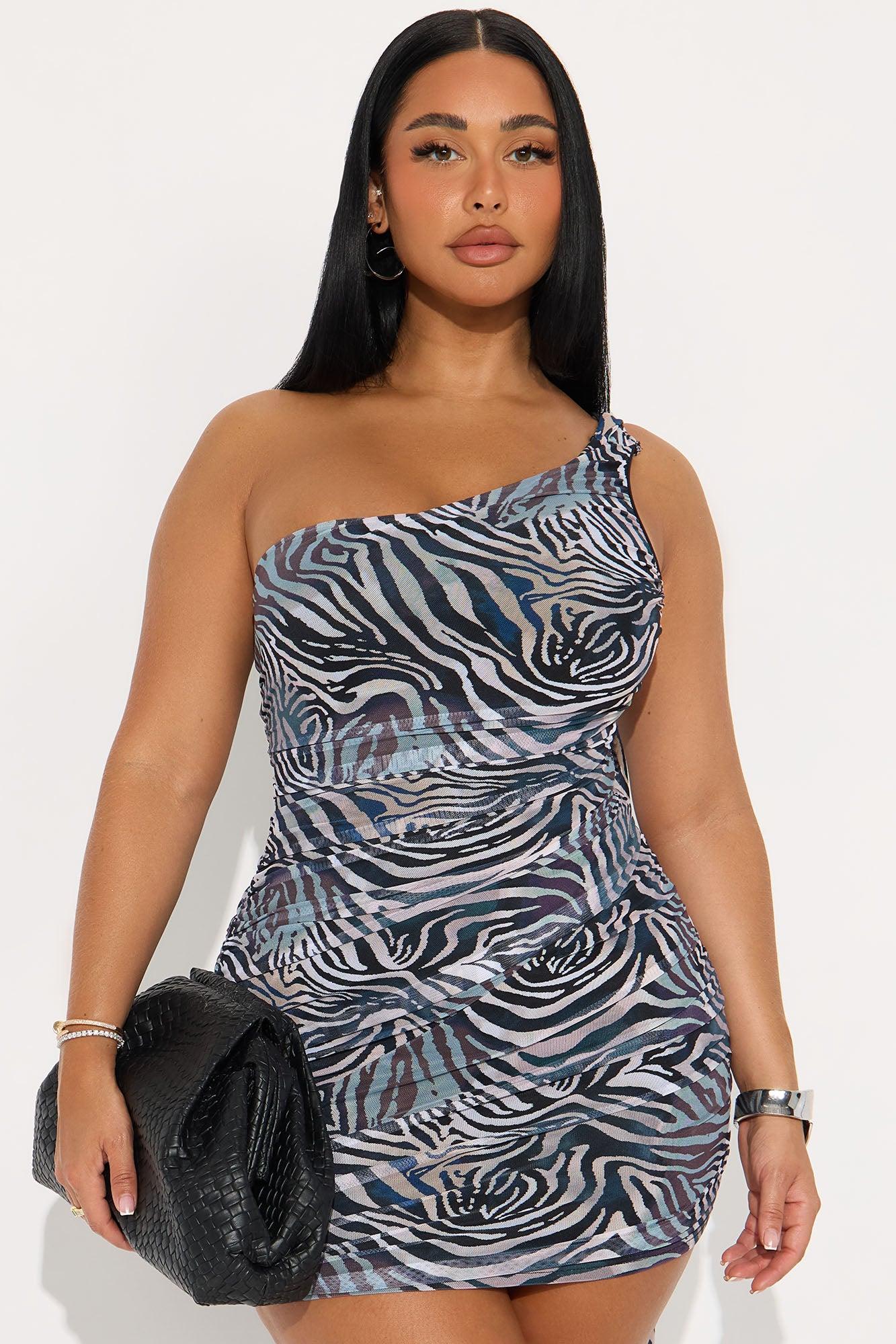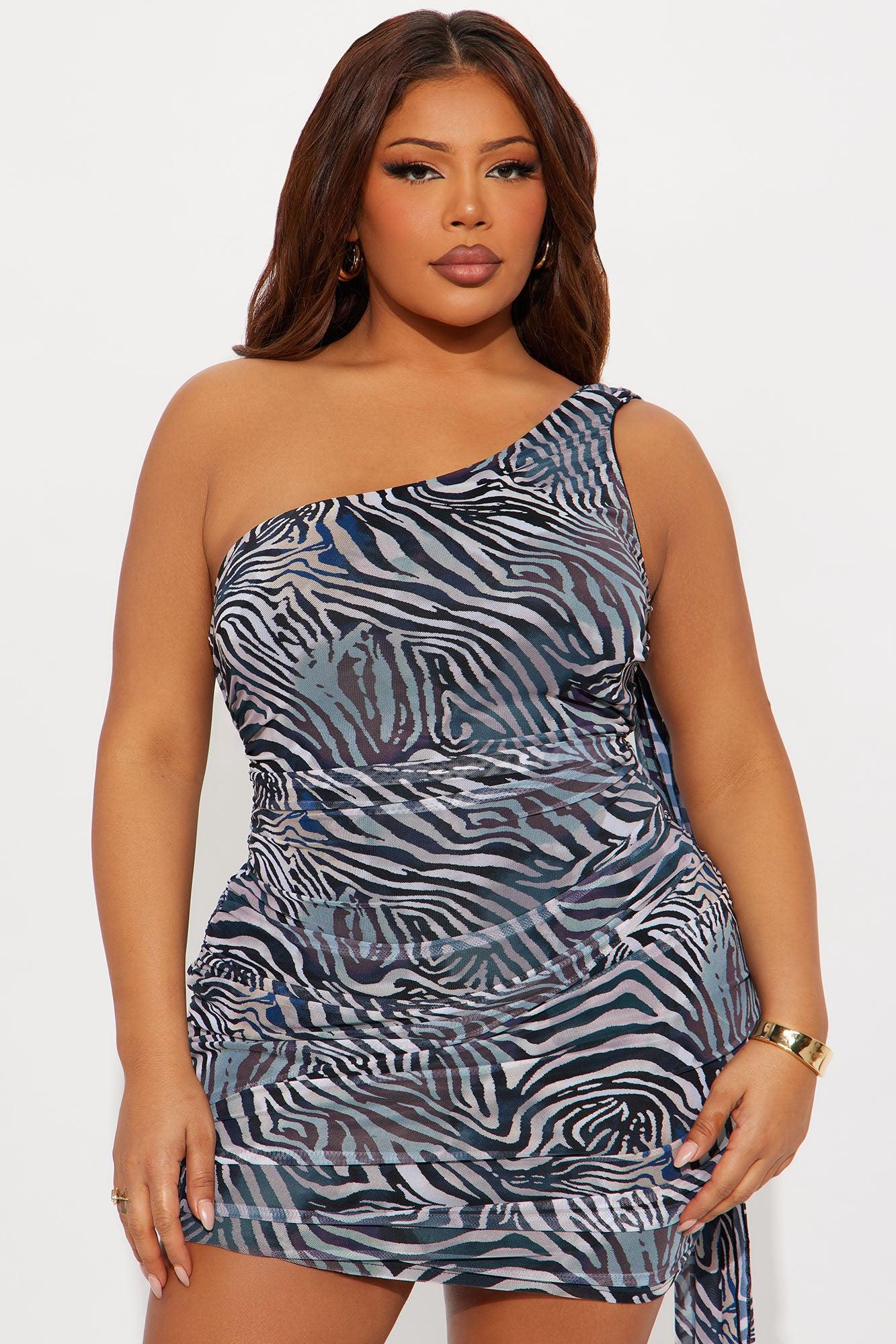Available In Black/combo. Zebra Print Mesh Mini Dress Sleeveless One Shoulder Scarf Detail Backless Lined Stretch Length Measured Flat = 32" Disclaimer: Print Placement May Vary. Self: 95% Polyester 5% Spandex Lining: 100% Polyester Imported