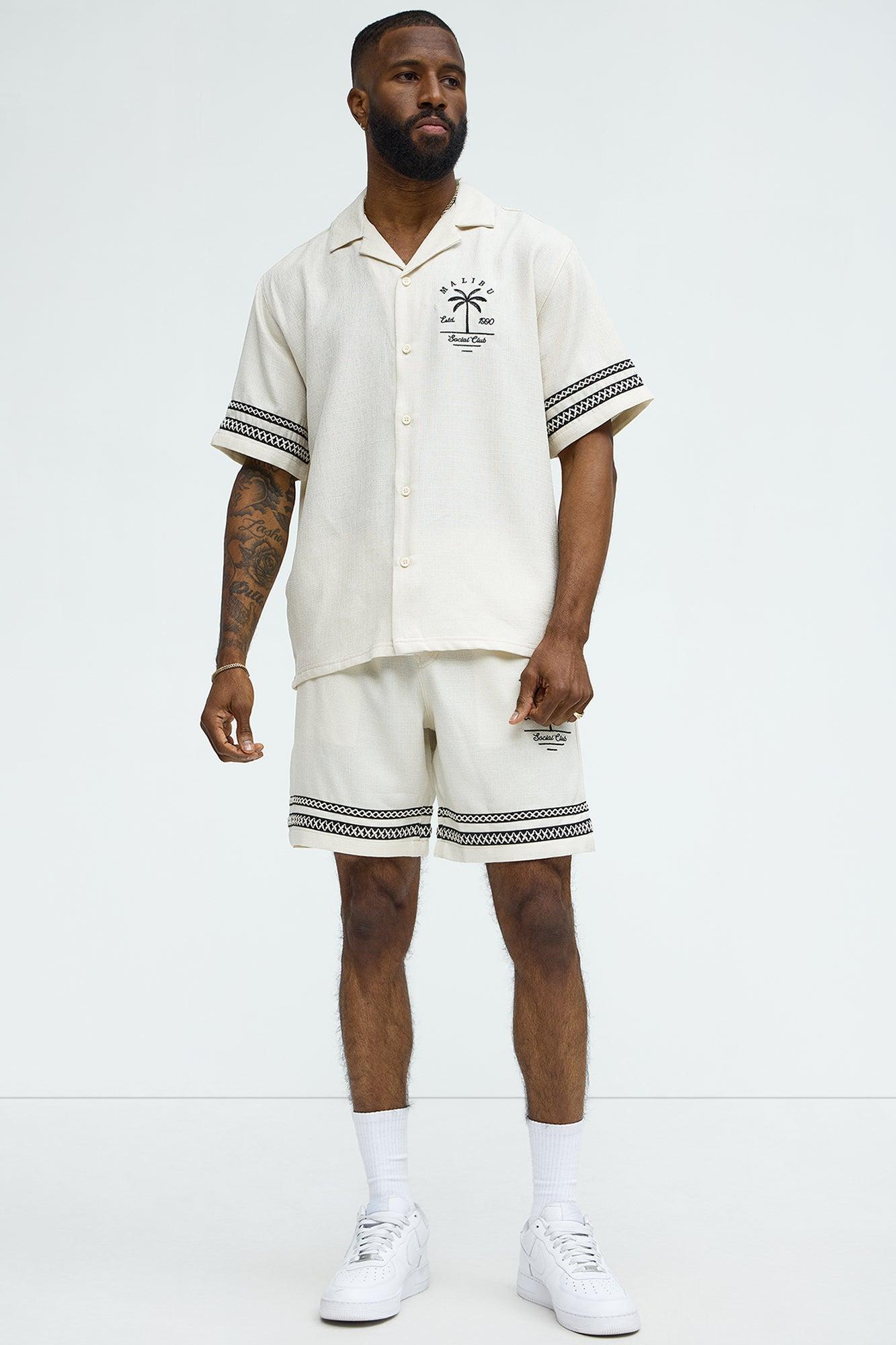 Zephyr Short Sleeve Graphic Button Down - Off White