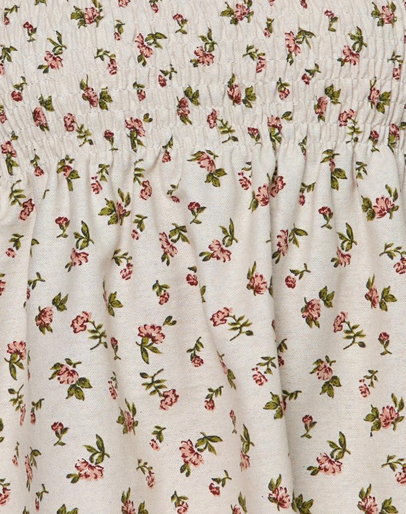 The Zerah top in a pretty dainty flower printed heavy linen fabric. Complete in a cami style, with a ruffled square neckline. Detailed with a peplum hem, it features a ruched bust and tie straps. Style with the Picu shorts. MODEL WEARS SIZE:EXTRA SMALL - MODEL HEIGHT:5'6.5