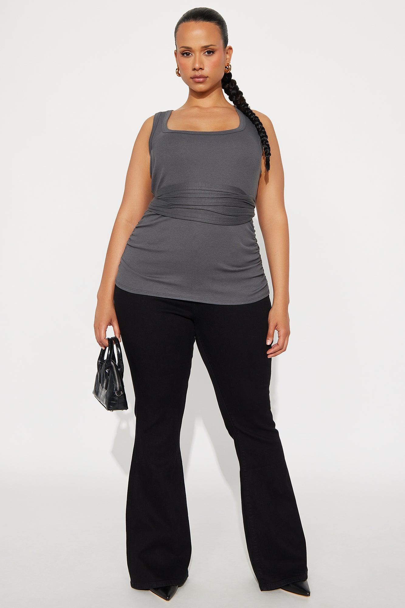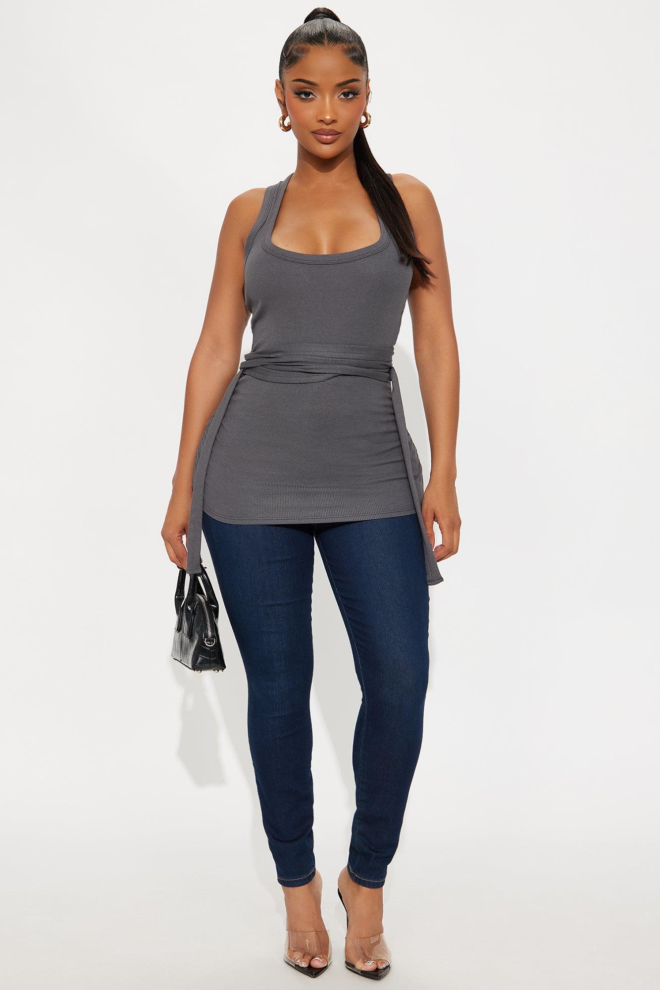 Zerlina Wrap Waist Tank Top - Charcoal Female