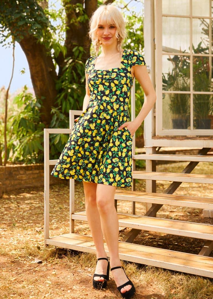 Add a splash of citrus charm to your wardrobe with the Zest for Life Sweetheart Dress from our ModCloth namesake label. Featuring a delightful lemon print, a flattering sweetheart neckline, and a timeless fit-and-flare silhouette, this mini dress radiates playful elegance. Whether you're strolling through a sunlit market or twirling under the evening lights, this effortlessly chic piece ensures you embody whimsy and vibrance from sunrise to sunset. Fabric: 94% Polyester, 6% ElastaneLength (Size S): 35"Care Instructions: Machine wash coldModel Measurements: Height 5'6" | Bust 36" | Waist 27" | Hips 40" | Wearing size S