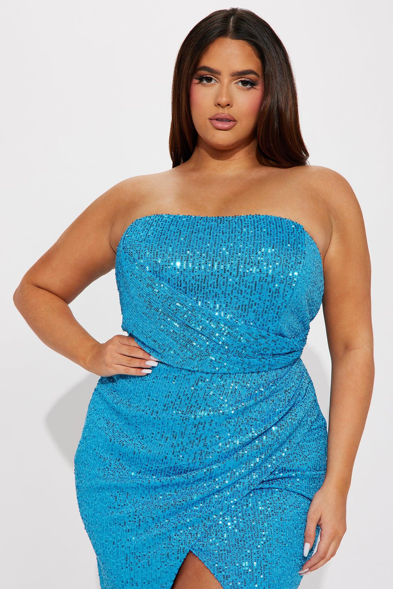Available In Aqua, Black, Fuchsia, Green, And Champagne. Sequin Dress Tube Back Zipper Slit Lining Self: 95% Polyester 5% Spandex Lining: 100% Polyester Imported