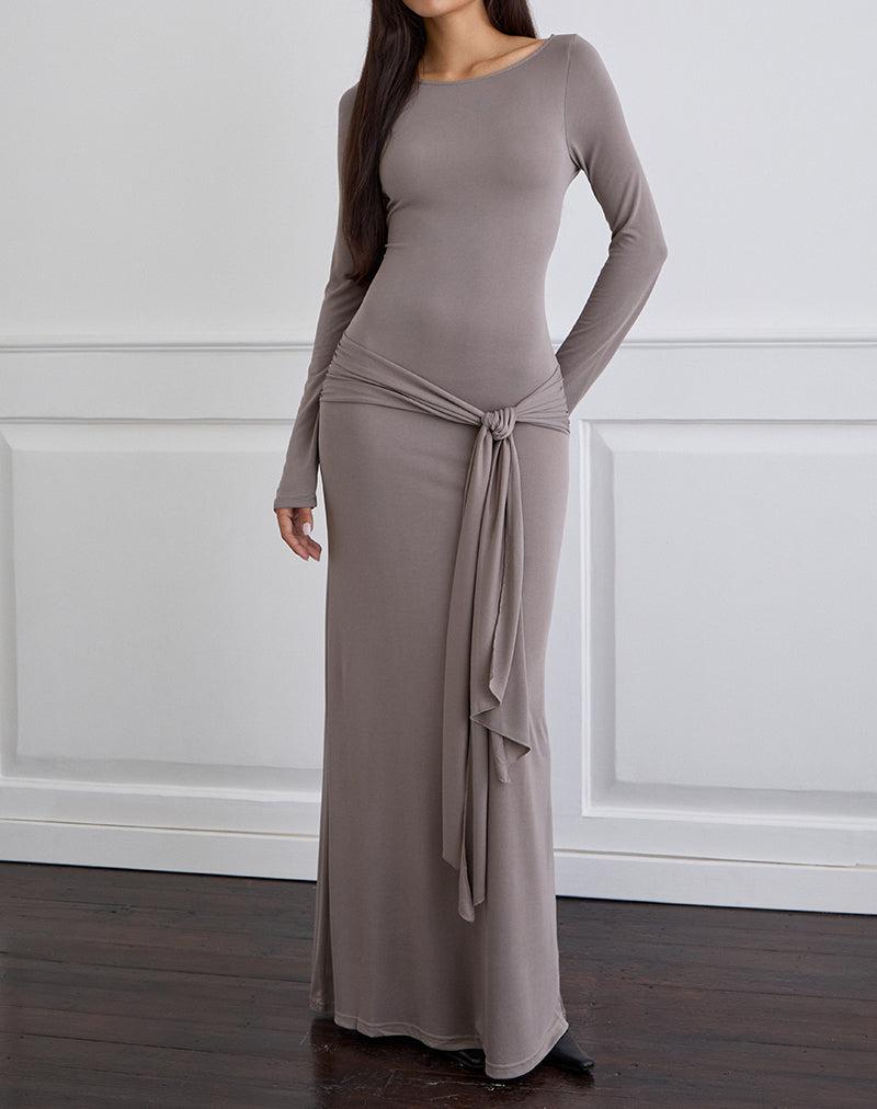 Zeya Maxi Dress in Cupro Taupe Grey Female