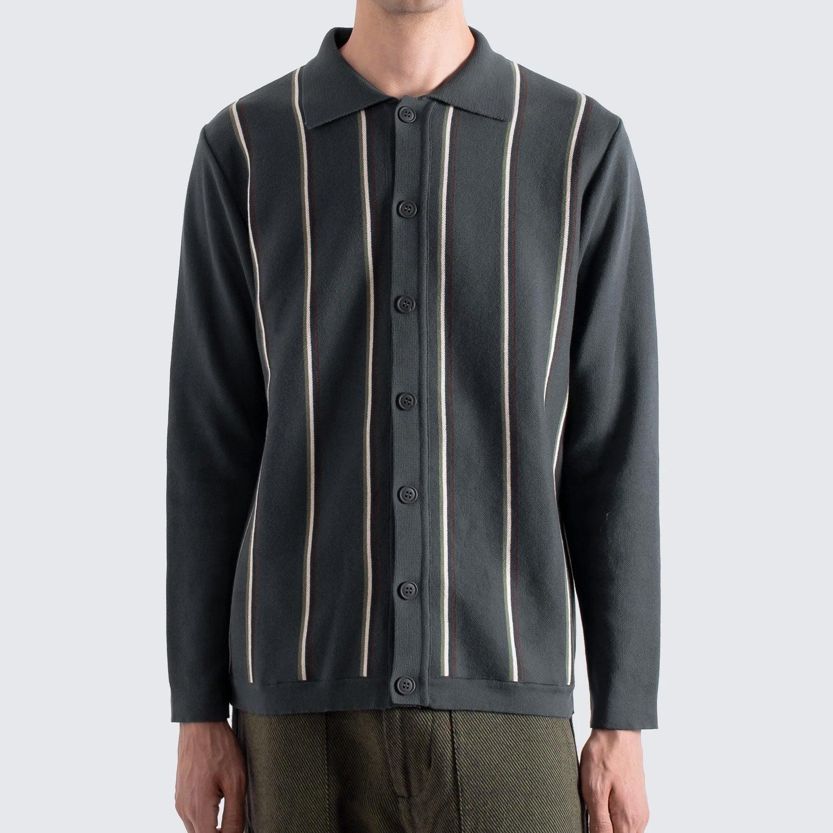 This Zig Kuki Stripe Cardigan is expertly crafted from midweight, 100% organic cotton that’s knit with a classic striped pattern for a retro-inspired look. It’s tailored with a slim-traditional fit and finished with a seven-button placket, a squared hem, and a spread collar to top it off. Soft, 100% organic cotton Knit striped pattern 7-button placket Squared hem Spread collar Traditional fit that runs true to size We recommend taking your normal size or taking one size up for a more relaxed fit Materials: 100% organic cotton The following measurements are for size Medium: Chest: 40” | Shoulder: 16 ½” | Sleeve: 32 ½” | Length: 26”