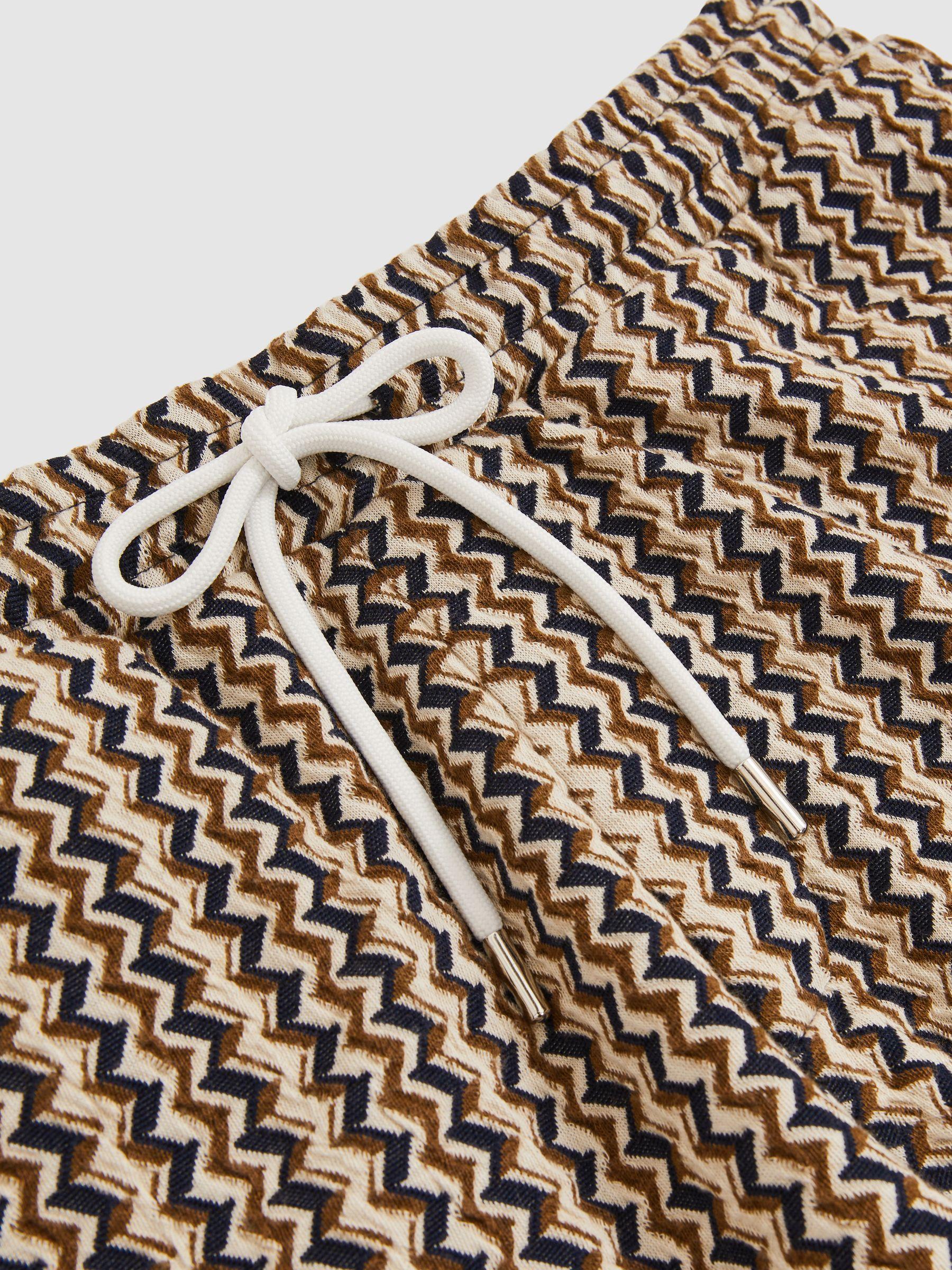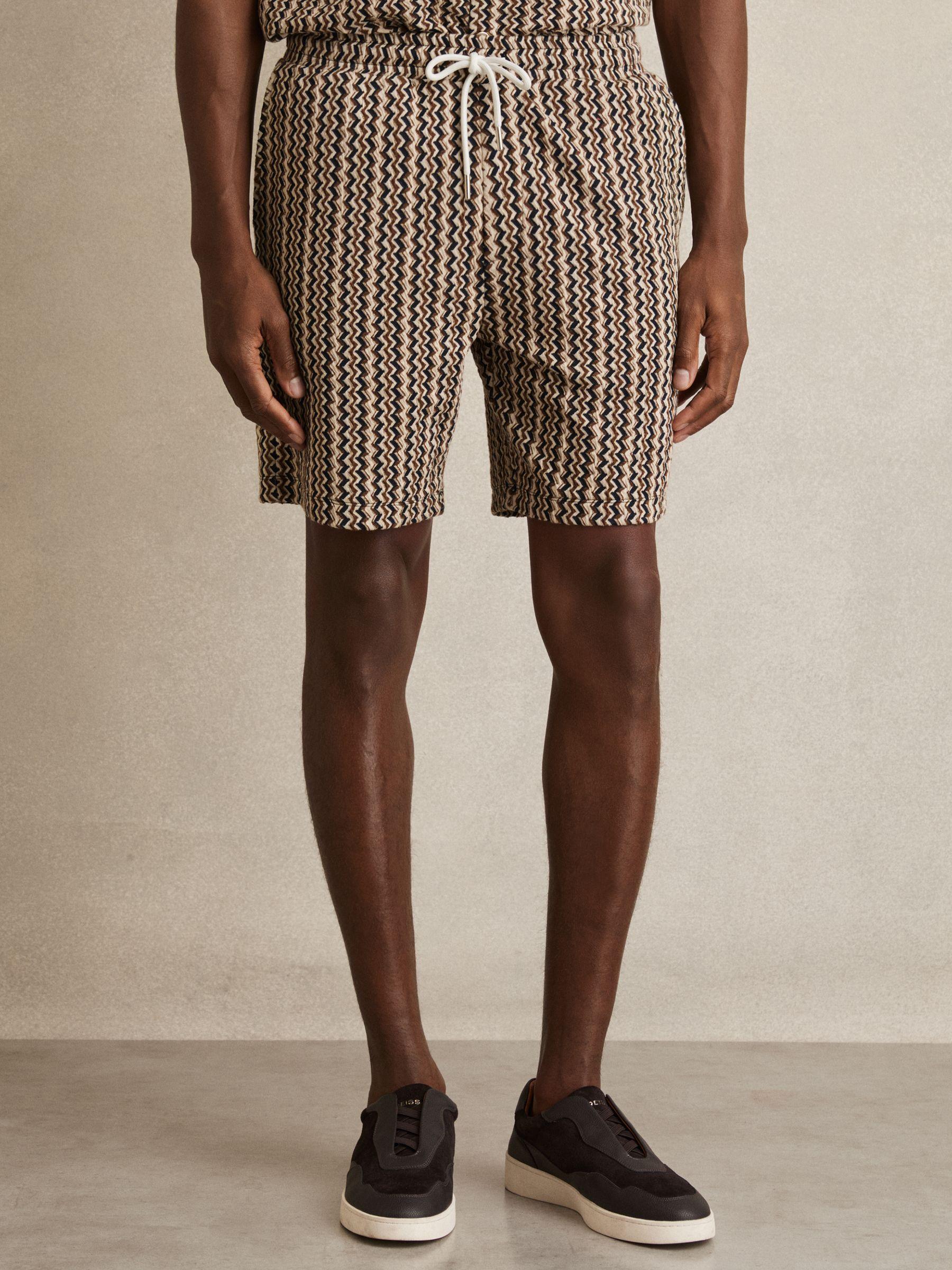 The Teti shorts are defined by a striking zig-zag pattern, bringing a bold touch to their relaxed silhouette. Crafted from a soft knit, they’re fitted with an elasticated drawstring waist for a comfortable fit. Knitted with stretch. Zig-zag stripes. Elasticated drawstring waist. Side slip pockets.