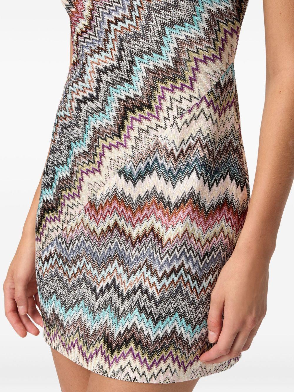 Missoni zigzag halterneck mini dress | Neutrals | beige | multicoloured zigzag pattern | halterneck | sleeveless | The item you receive may differ slightly from the item photographed. This is due to the artisanal nature with which all Missoni products are constructed. | Viscose/Polyester | Cocktail & Party Dresses | Dresses | Clothing | Women