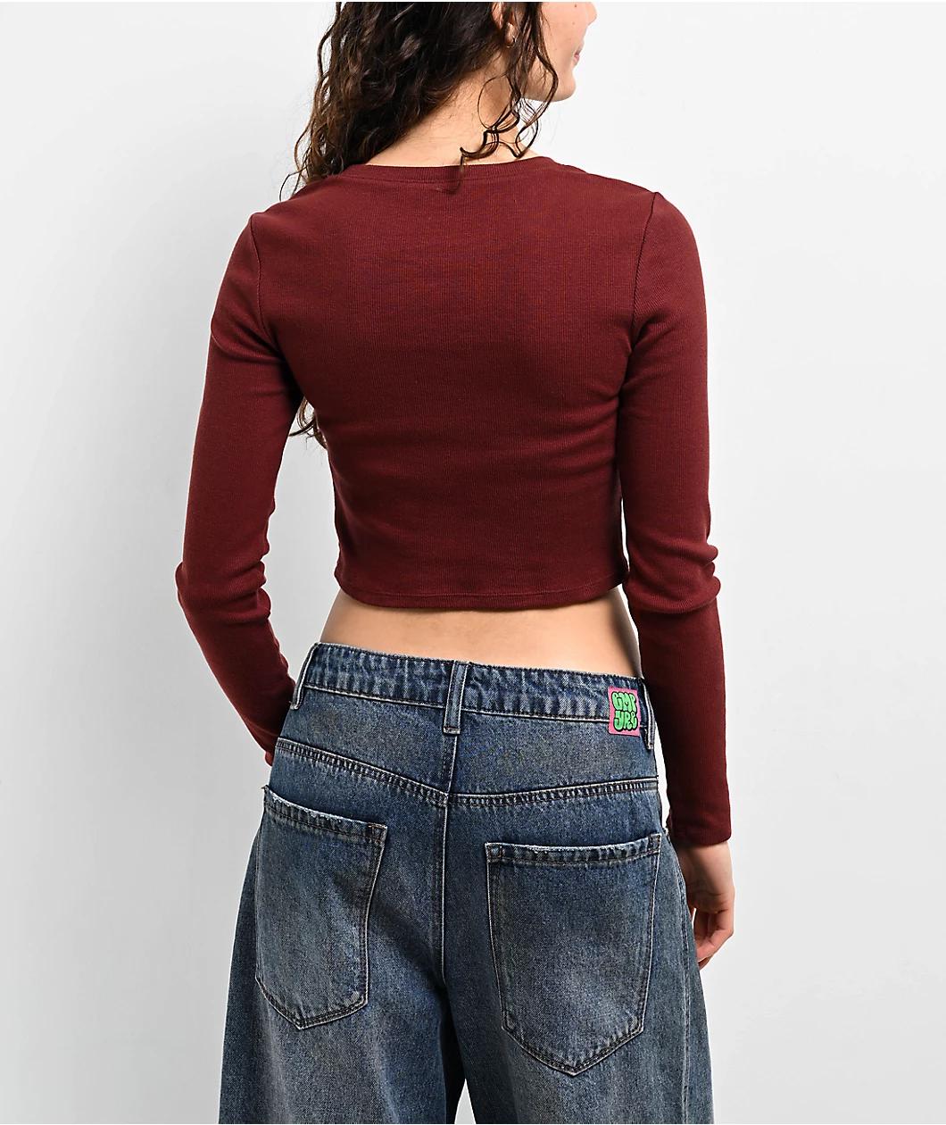 Zine presents the perfect long sleeve crop top in the Shiloh t-shirt. Landing in a deep red "Andorra" colorway, the tee is the perfect staple to use in any casual outfit. A ribbed knit construction hugs your body to ensure a flattering slim fit.