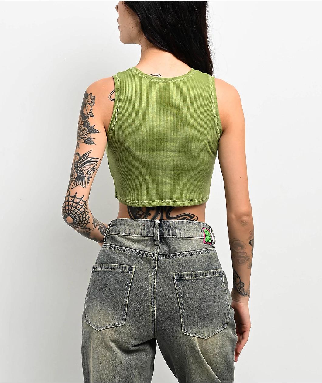 Made of a cotton-poly blend, the Sunney tank top from Zine come in a green Epsom colorway with a ribbed, crop construction and light stitching throughout.
