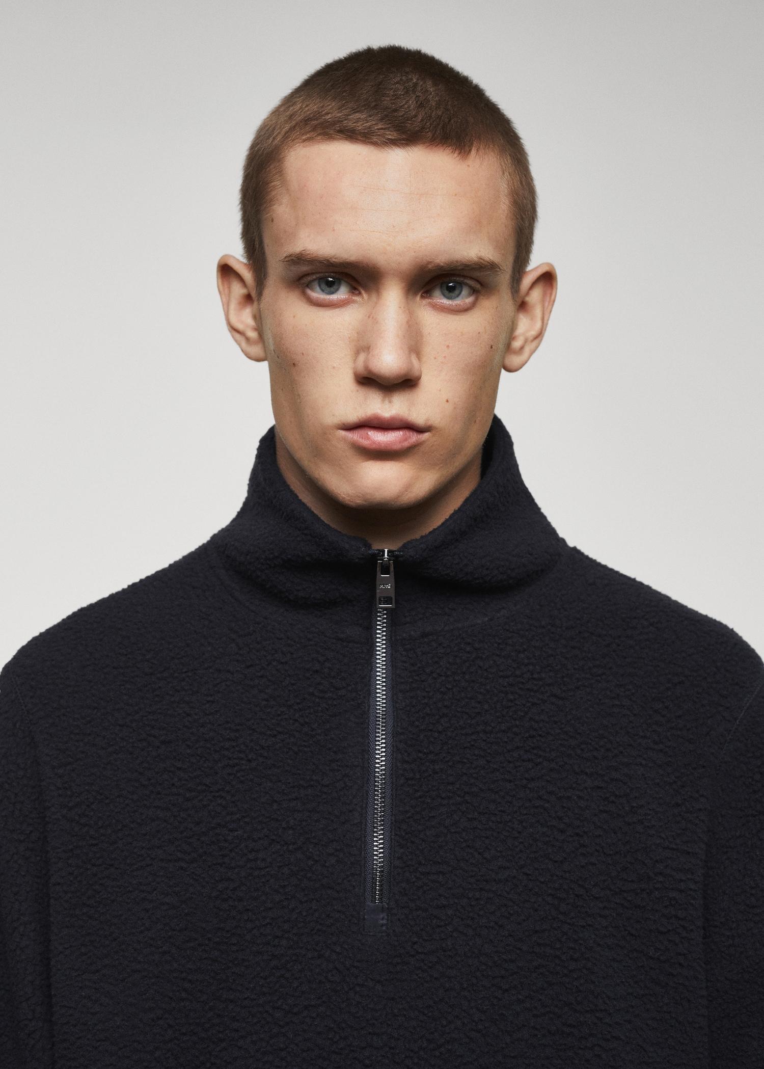 The gray model is an online exclusive. Polar fleece fabric. Perkins collar with zipper closure. Backstitched details. Long sleeves with elastic cuffs. Two front welt pockets with zippered closures. Straight hem. Model is 190 cm and wears size M. Back length 28.54 in
