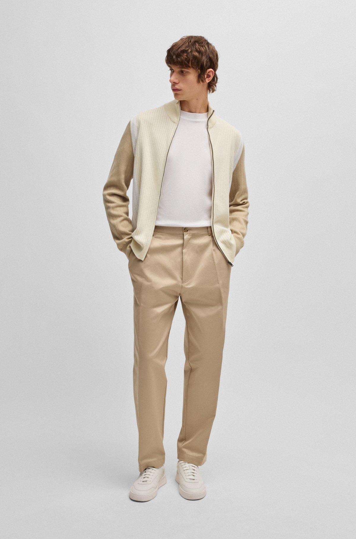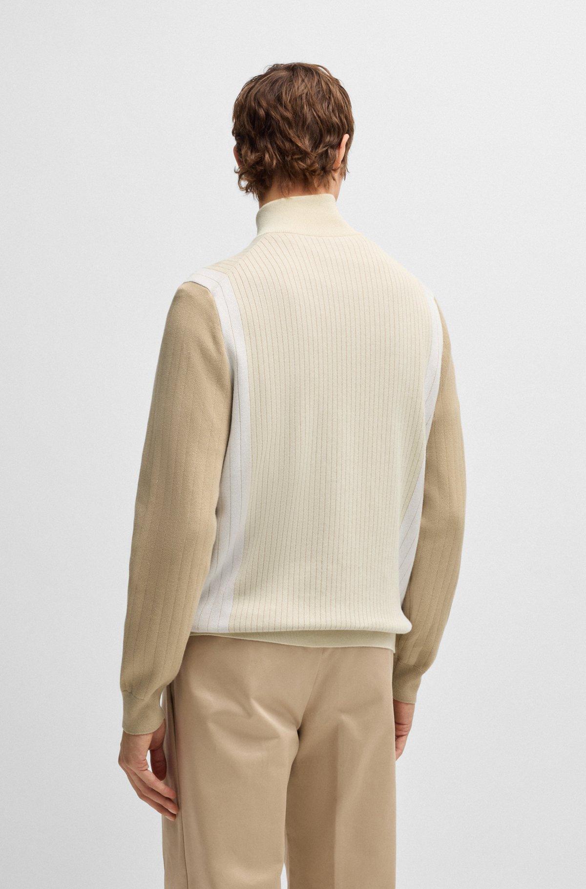 Zip-up cotton cardigan with knitted pinstripes