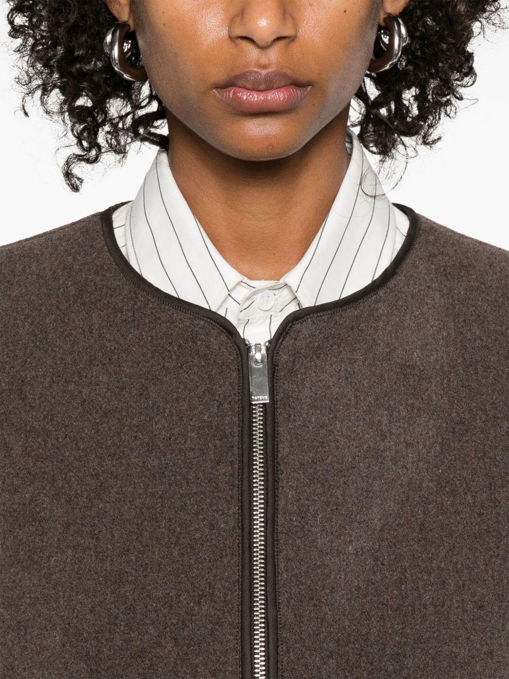 TOTEME zip-up jacket | Brown | earth brown | front zip fastening | crew neck | two front patch pockets | long sleeves | Nylon | Military Jackets | Jackets | Clothing | Women