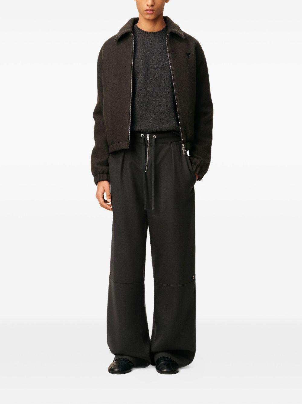 AMI Paris zipped wool trousers | Black | black | zip front fastening | pleated front | snap button pockets | drawstring waist | Wool | Loose Fit Pants | Pants | Clothing | Men
