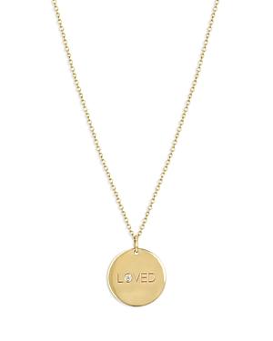 Handcrafted of 14K yellow gold, Zo Chiccos necklace features a polished disc pendant engraved with Loved lettering. A petite round flush-set diamond adds a touch of sparkle to this charming accessory. Diamond, 0.015 tcw 14K yellow gold Made in USA SIZE Adjustable chain: about 18-20L. Fashion Jewelry - Fashion Designer > Zo Chicco > Saks Fifth Avenue > Barneys. Zo Chicco. Color: Gold.