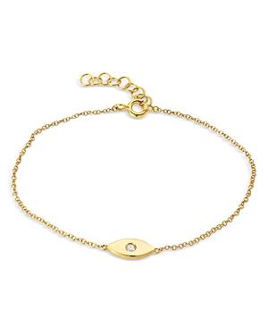 An ancient symbol of protection, this evil eye charm is forged from timeless 14k gold with a petite diamond pupil. Hung from a slim chain, this bracelet is a perfect addition to your everyday collection. This item is made to order, please allow 1-2 weeks to ship. 14k gold and diamond Diamond: 0.02 tcw Diamond: sourced from Canada and the USA Spring ring closure Spot clean Made in the USA Size & Fit Length: 6.5in Extender: 0.5in Charm width: 10mm Charm height: 5mm | Zoe Lev Womens Diamond Evil Eye Bracelet in Gold