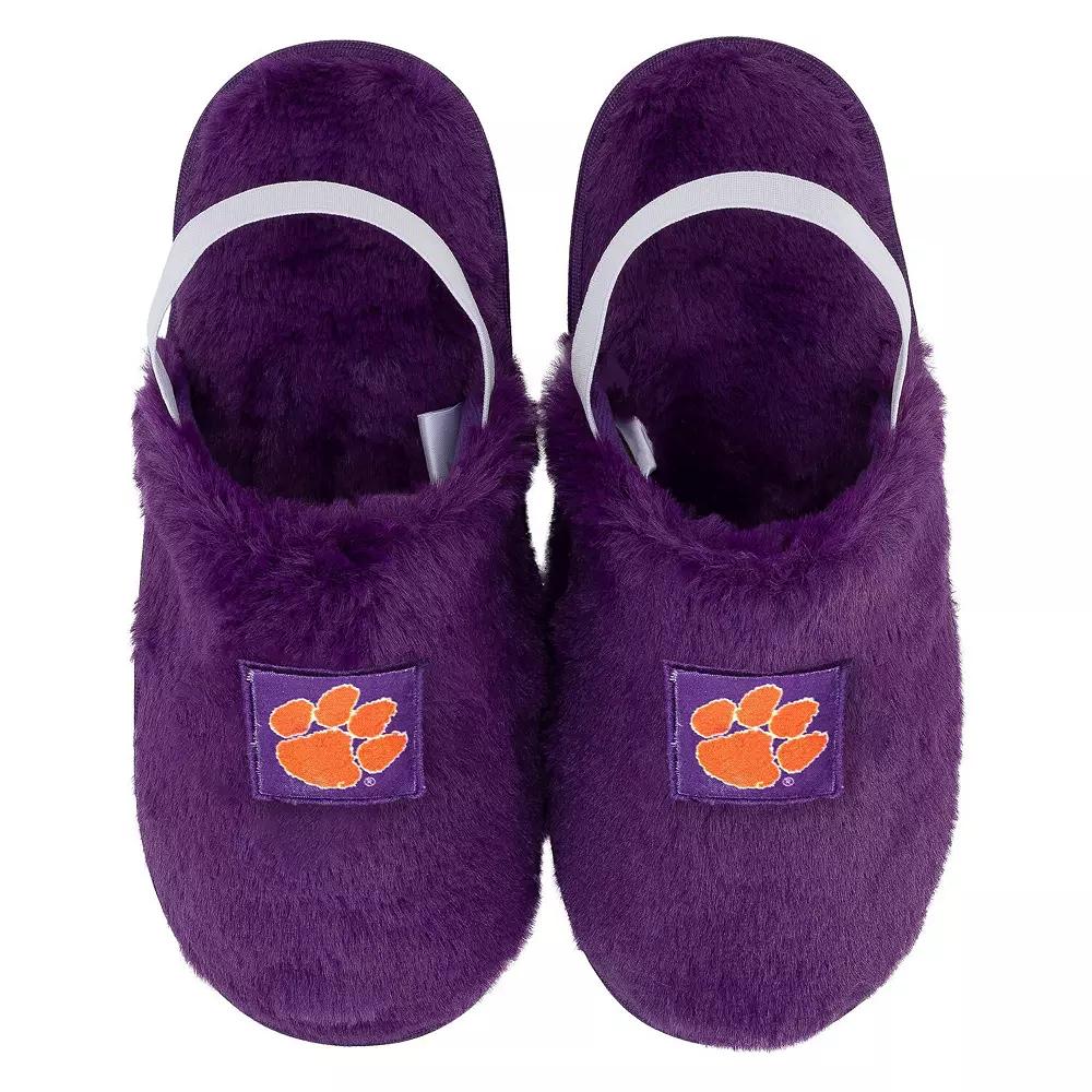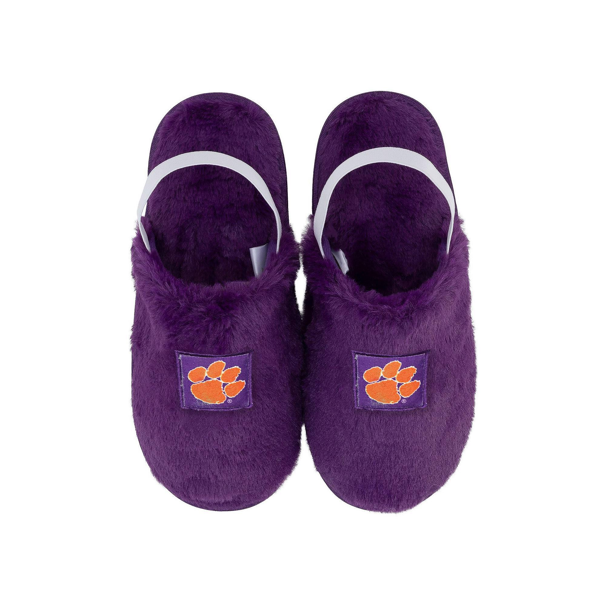 Relax and keep your feet warm while showing your Clemson Tigers loyalty with these Bennett Slippers from ZooZatz. Designed with an elastic ankle strap, these slippers ensure a secure and snug fit, perfect for lounging around the house or cheering on your favorite team from the couch. Plus, they feature embroidered team graphics, allowing you to showcase your Clemson Tigers pride in ultimate comfort. Brand: ZooZatz. Embroidered team graphics. Imported. Elastic ankle strap for a secure fit. Surface washable. Textured outsole. Material: 100% Synthetic Materials. Officially licensed. Size: 7-8. Color: Purple. Gender: female. Age Group: adult. Material: OTHER MATERIAL.