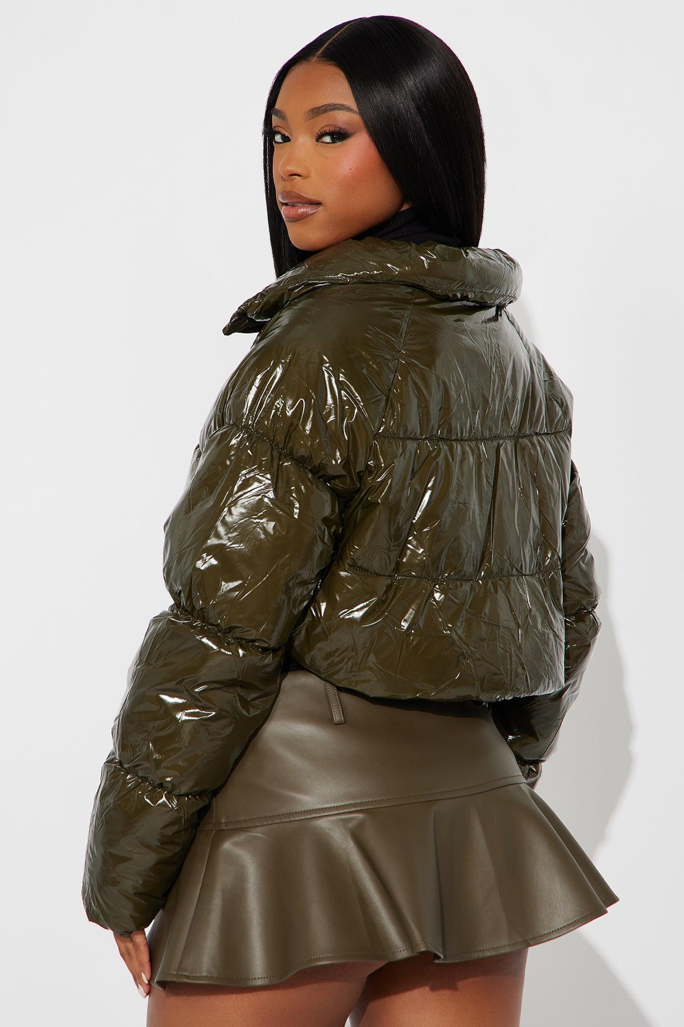 Zora Faux Patent Leather Cropped Puffer Jacket - Olive Female