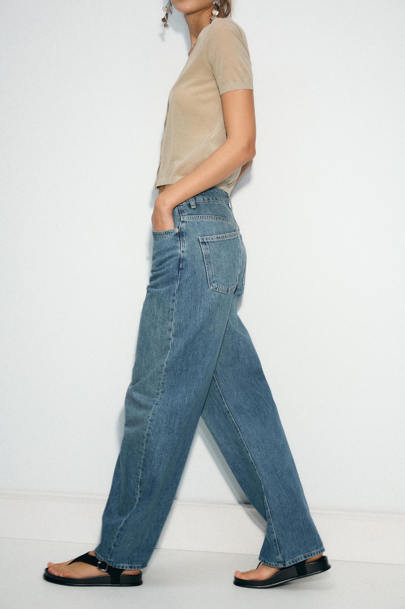 HIGH WAIST - BARREL LEG - ANKLE LENGTH ZARA WOMAN COLLECTION High-waisted jeans with belt loops. Five pockets. Washed effect. Front zip and metal button closure.