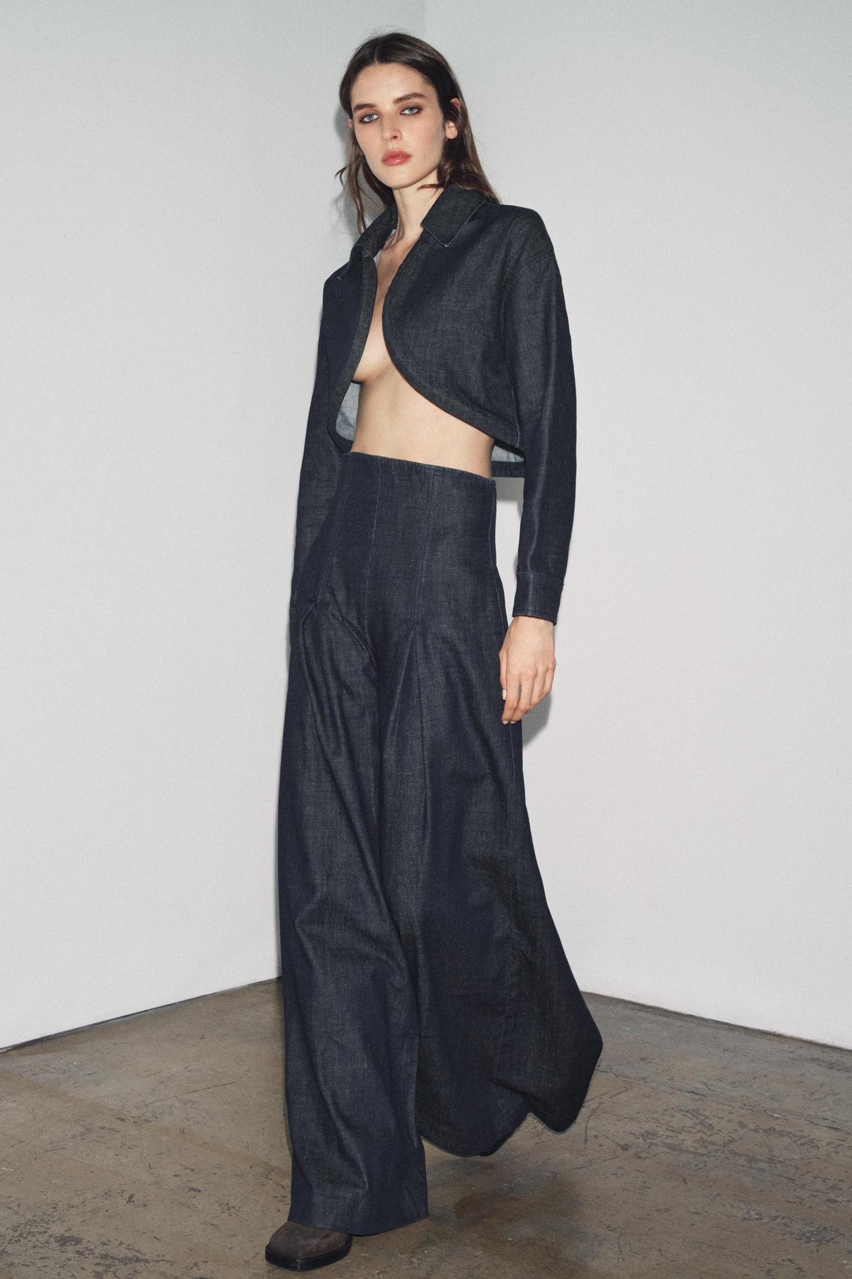 ZARA WOMAN COLLECTION Denim bolero jacket. Lapel collar and long sleeves with buttoned cuffs. Finished with rigid internal stays lined in the same fabric.