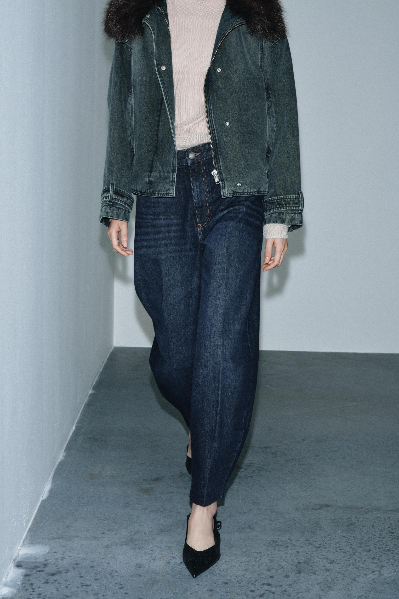 HIGH WAIST - TAPERED LEG - FULL LENGTH ZARA WOMAN COLLECTION Mid-rise jeans with belt loops. Front and back pockets. Washed effect. Ironed crease detail. Front zip and button closure.