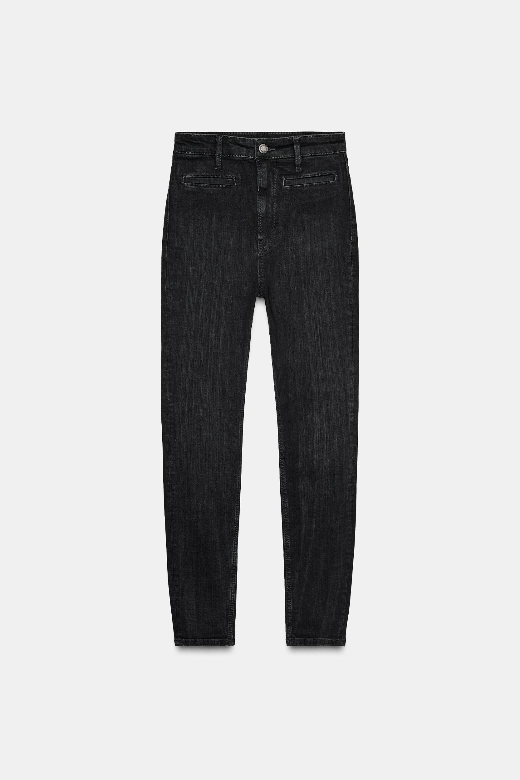 ZARA WOMAN COLLECTION High-waisted jeans with belt loops. Front welt pockets. Washed effect. Front zip and button closure.