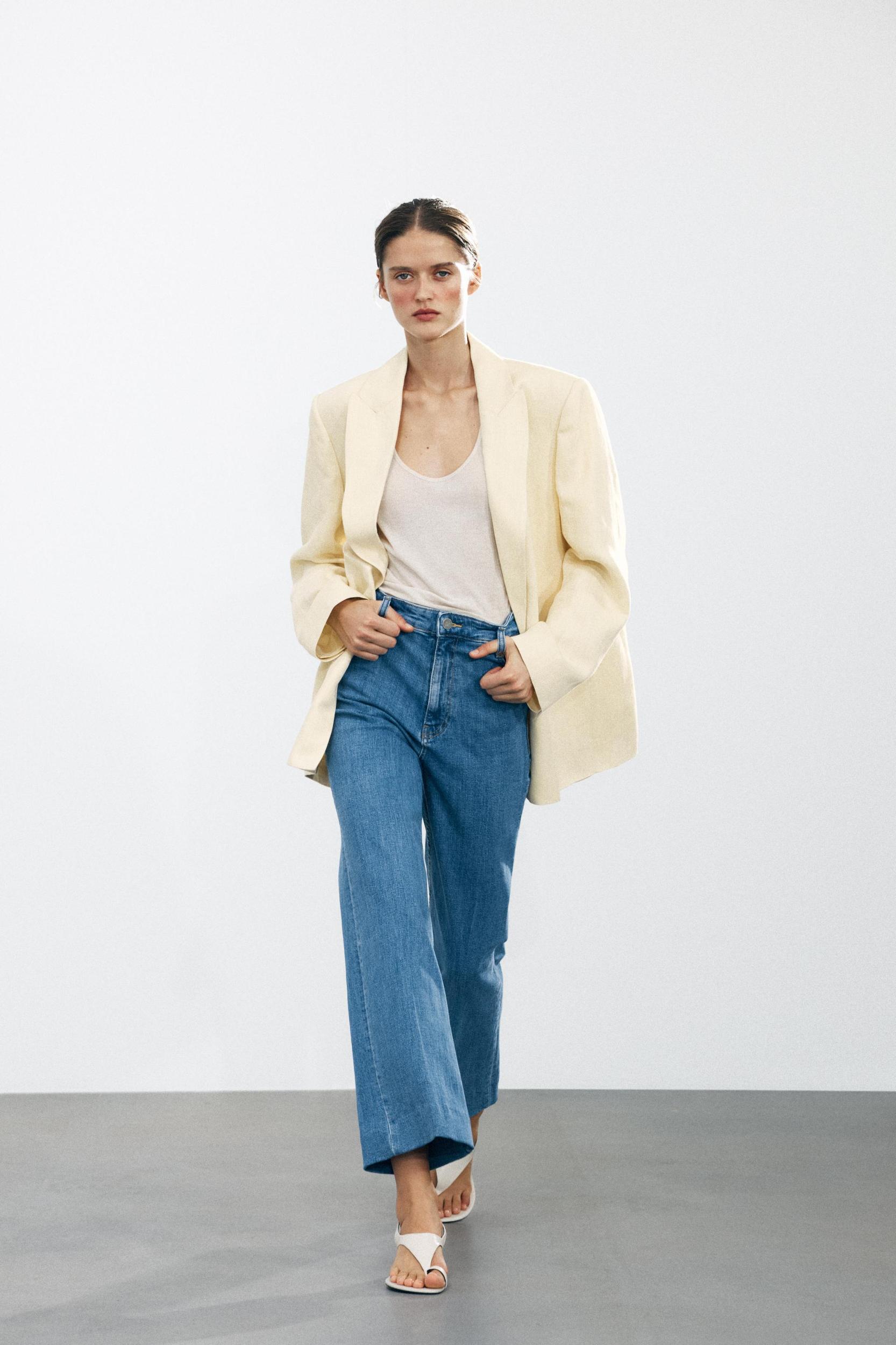 ZARA WOMAN COLLECTION High-waisted jeans with belt loops. Washed effect. Wide leg. Front zip and button closure.