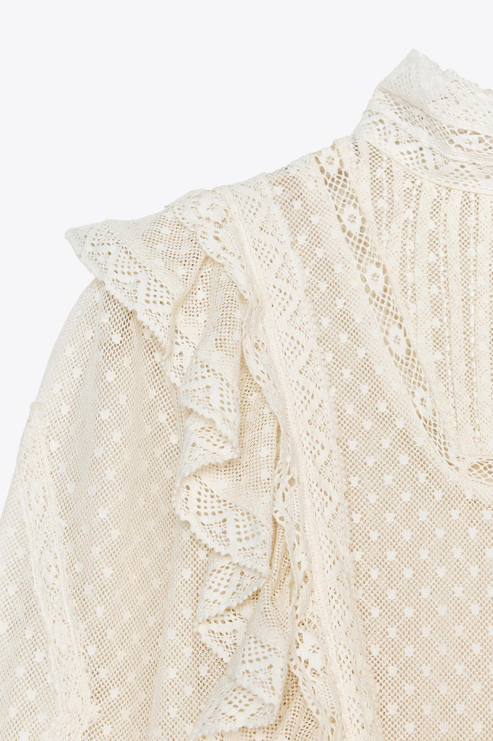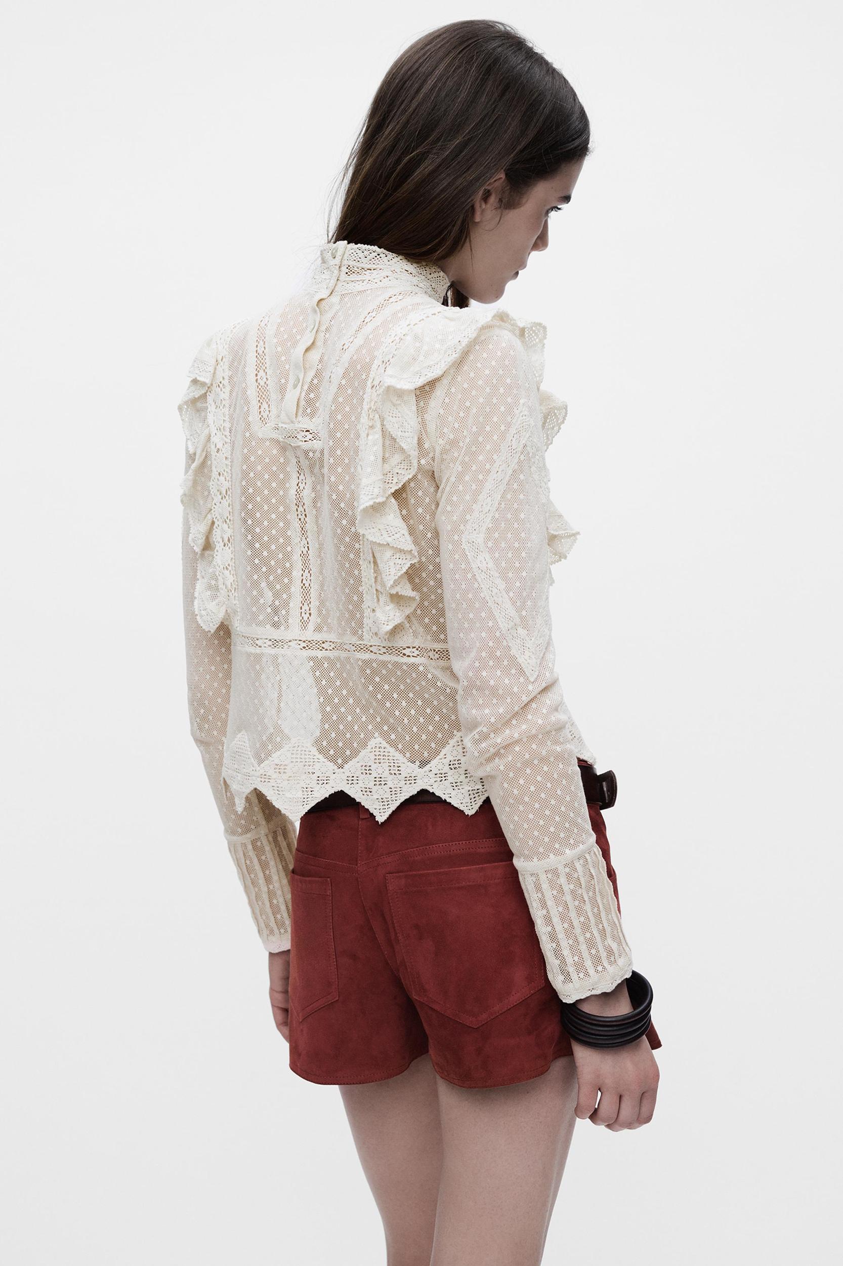 ZARA WOMAN COLLECTION Shirt made of cotton blend fabric. Mock neck and long sleeves. Tonal embroidery details. Back closure.
