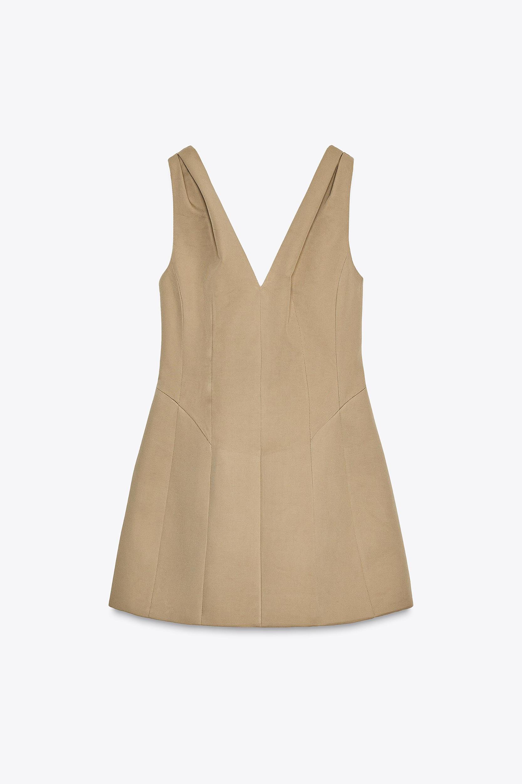 ZARA WOMAN COLLECTION Short V-neck dress with sleeveless design. Voluminous hem. Concealed zip fastening at the seam.