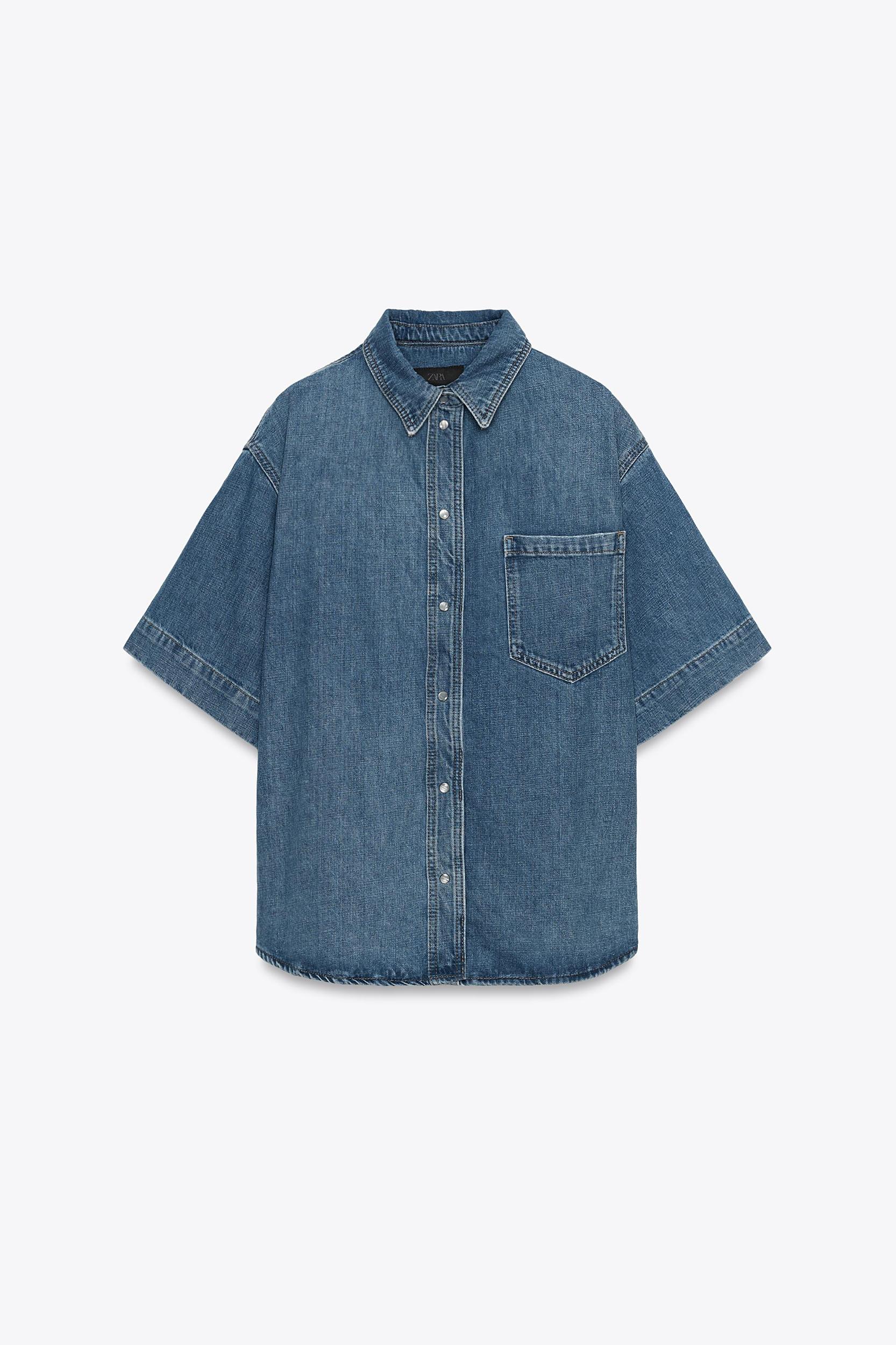 ZW COLLECTION SHORT SLEEVE DENIM SHIRT