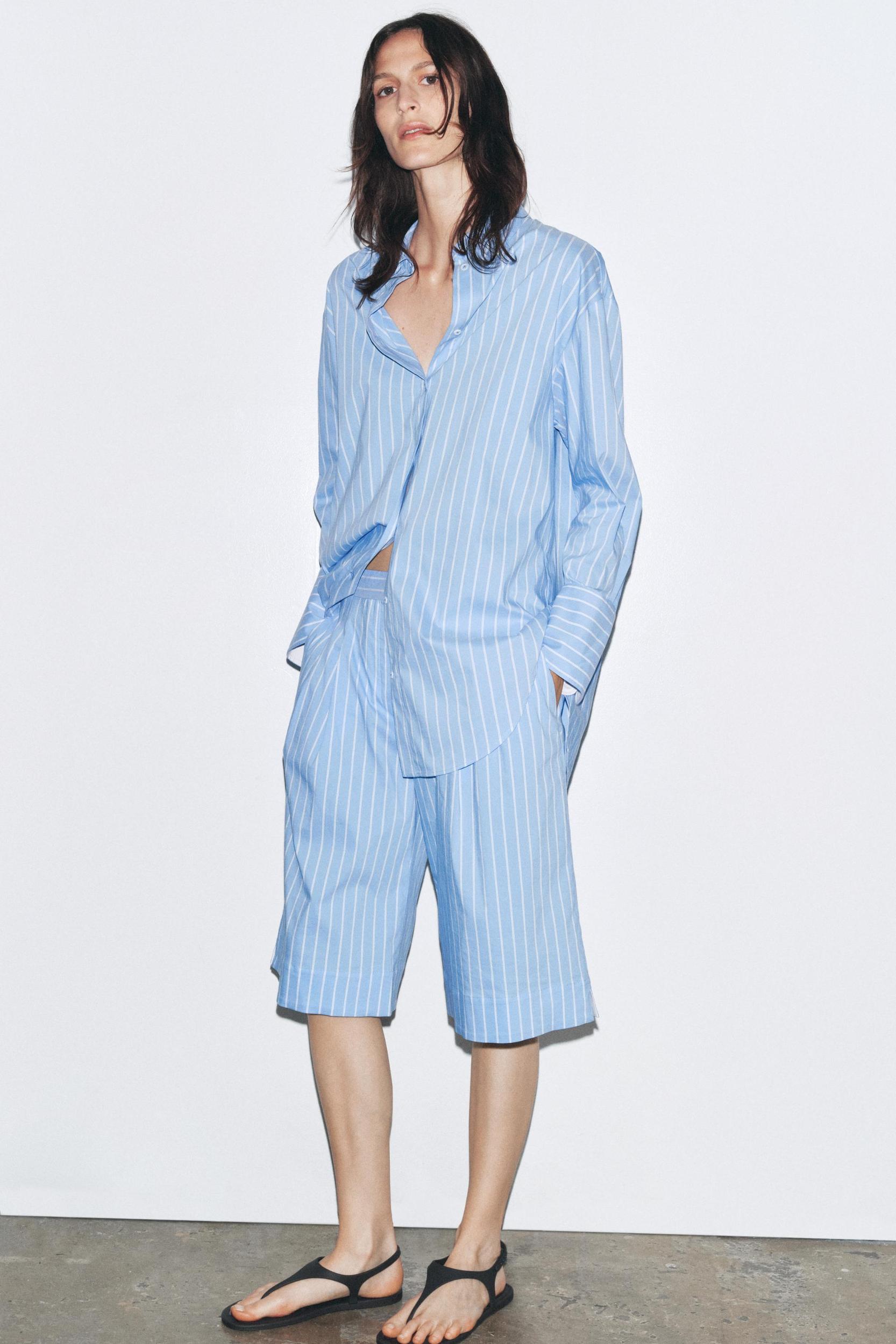 ZW COLLECTION STRIPED PLEATED BERMUDA SHORTS