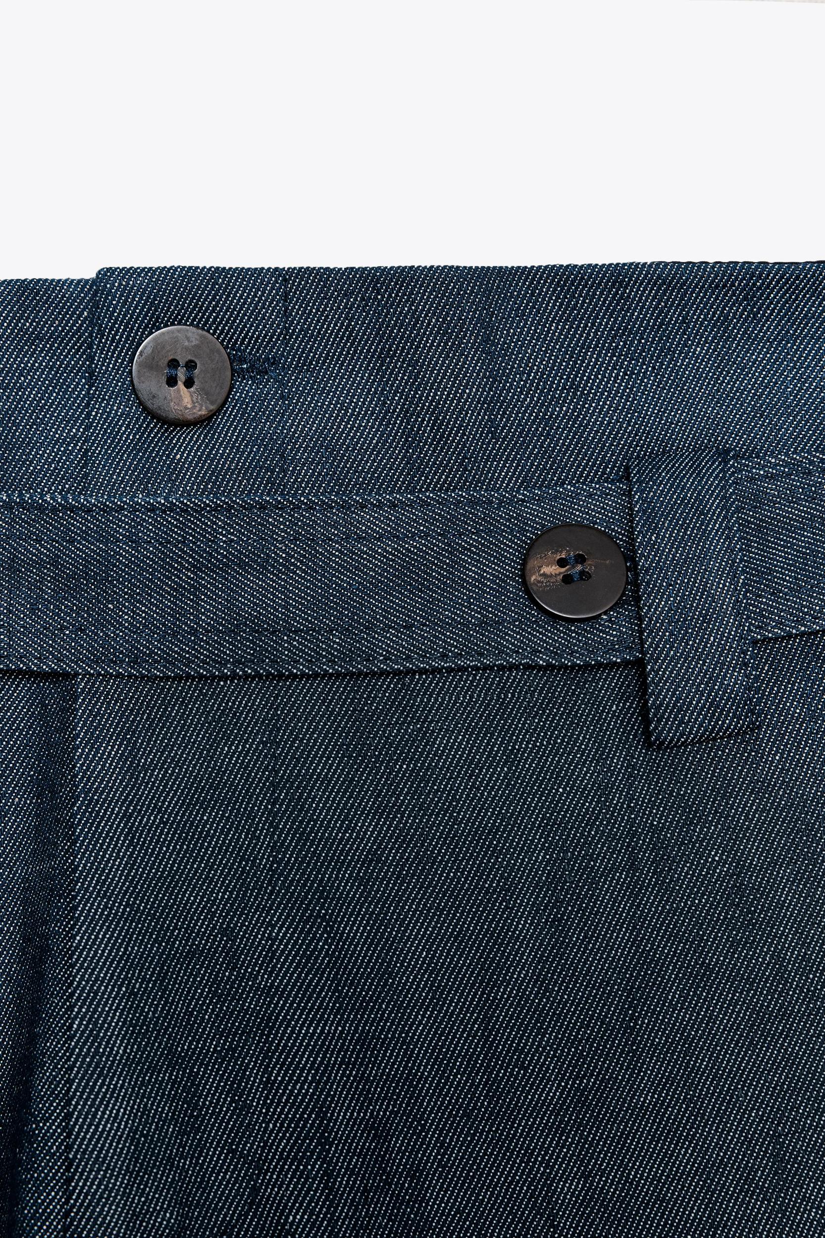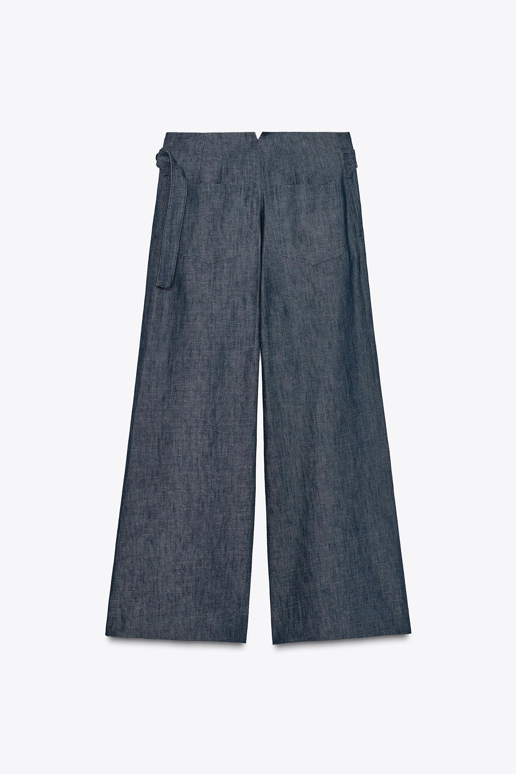 ZARA WOMAN COLLECTION Mid-rise pants with belt loops. Side pockets hidden in the seam. Matching adjustable fabric belt with buttons. Wide leg. Front zip and button closure.