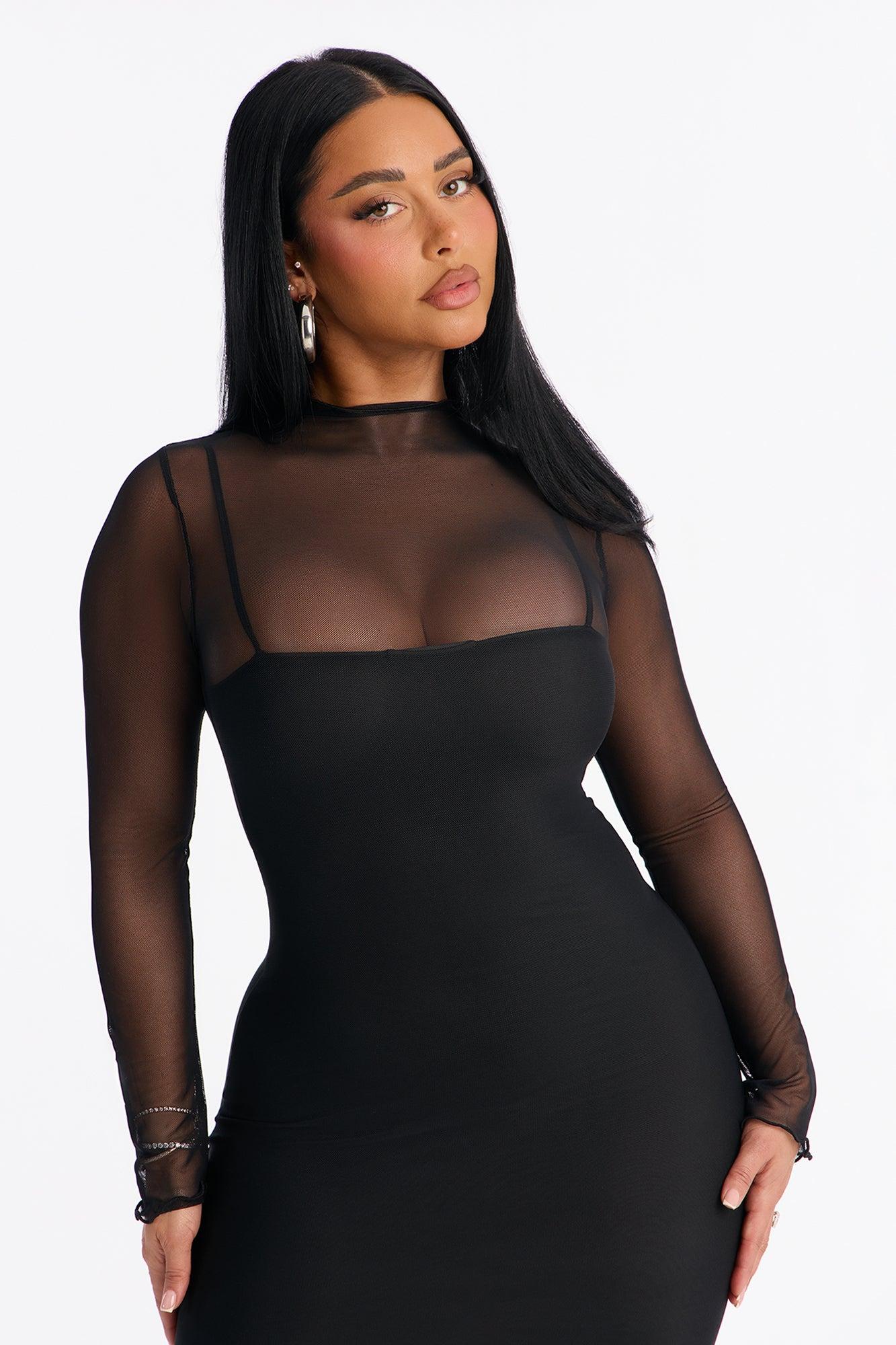 Zyana Mesh Midi Dress - Black Female
