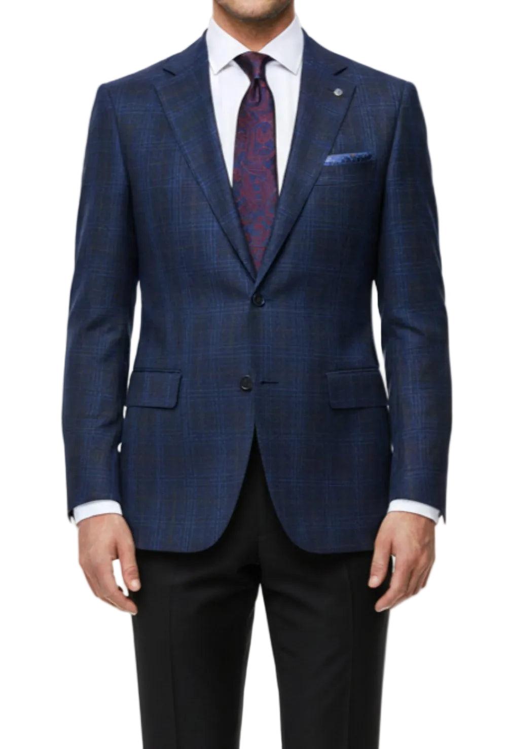 (36R) Regular Fit Wool & Linen Blue Plaid Blazer