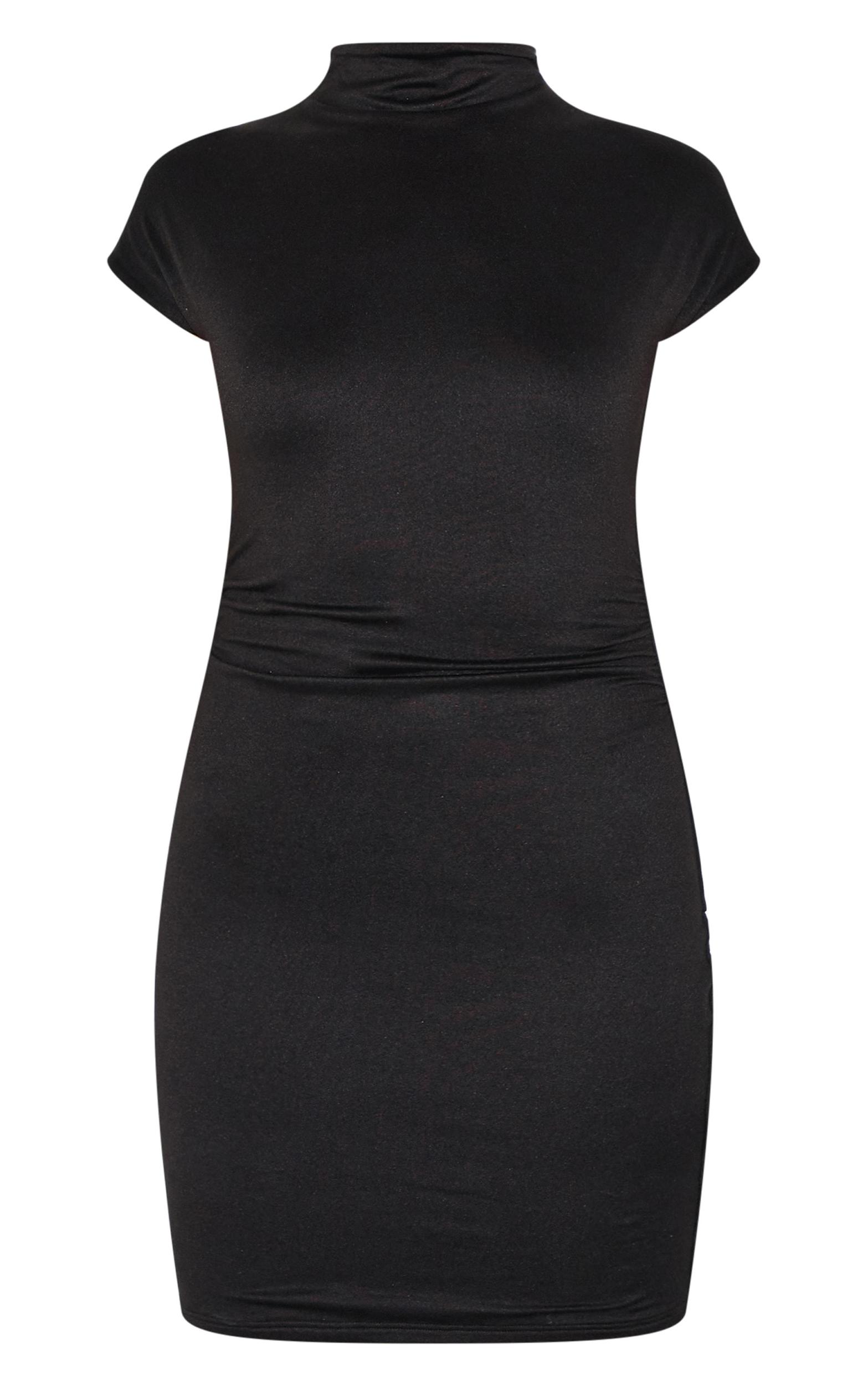 The bodycon, reimagined. This black double contour dress offers a masterclass in considered construction. Sculpted from a double-layered material, the design ensures a supremely smooth silhouette, while the subtle ruching adds a tactile dimension and enhances the form without compromising on refinement. The cap sleeves lend a delicate balance to the close fit, making it a versatile piece for transitional styling. Consider it the foundation for a minimalist evening look, elevated with sculptural earrings from our jewelry collection. Length approx 83cm/32.5inch (Based on a sample size UK 8) Model wears size UK 8/ EU 36/ AUS 8/ US 4Model Height - 5ft 9inchp]:!mb-0inch>Category: DressesProduct type: Bodycon DressColor: BlackMaterial: Single JerseyNeckline: High NeckSleeves: ShortOccasion: Day