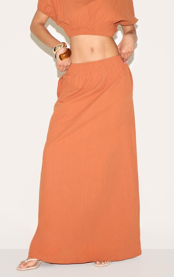 Turn heads with this burnt orange sheered waist low rise maxi skirt. Made from a burnt orange sheered waist material with a low rise maxi skirt design for a flattering and comfortable fit. Style with the matching top and statement accessories for a look like no other. Length approx 77.5cm/30.5inch (Based on sample size US 4)Model wears size UK 8/ EU 36/ AUS 8/ US 4Model Height - 5ft 9inchp]:!mb-4inch>Category: Co-ordsProduct type: Maxi SkirtColor: Burnt OrangeOccasion: Day