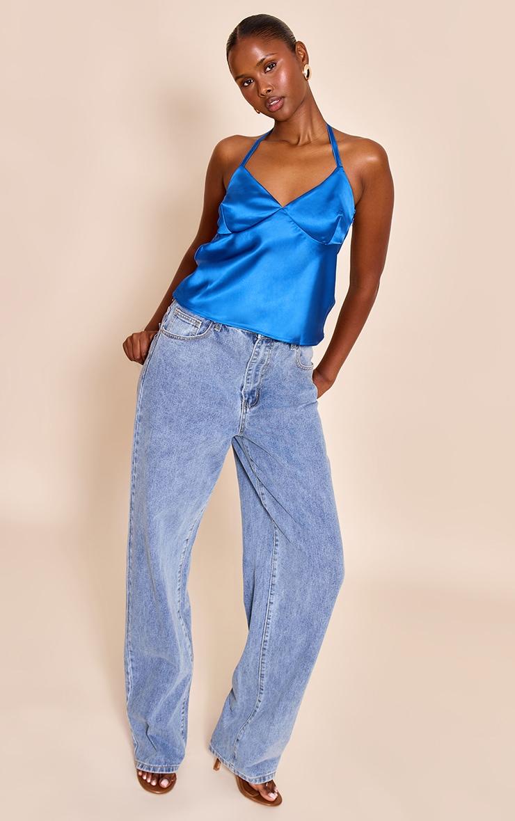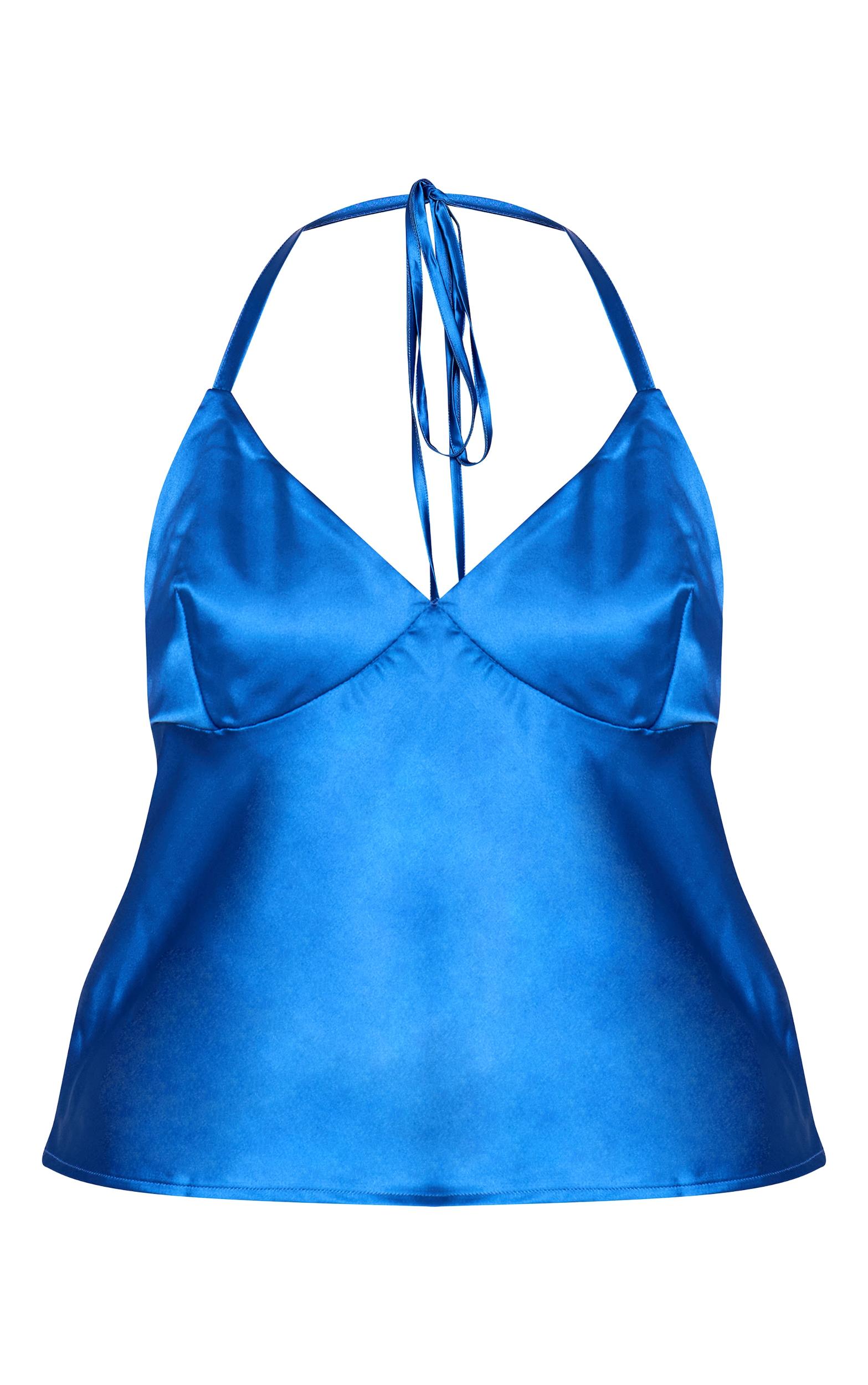 Your evening agenda just got a vibrant upgrade. Command attention in the cobalt satin halter neck top, a knowing piece designed to illuminate your after-dark presence. Its bold cobalt hue and lustrous satin finish catch the light, while the sophisticated halter neckline frames a deep V, gathering subtly at the bust for an artful touch. The relaxed cut flows with effortless ease, ensuring a confident silhouette. For an assured after-dark ensemble, pair this essential top with sleek tailored pants and sharp heeled mules, or embrace a modern approach by styling it with wide-leg light wash jeans and understated jewelry, as seen. It’s the definitive piece for those who command their style with effortless precision.Length approx 48.5cm/19inch (Based on sample size US 4)Model wears size UK 8/ EU 36/ AUS 8/ US 4Model Height - 5ft 9inchp]:!mb-4inch>Brand: PrettyLittleThingCategory: TopsProduct type: Cami TopColor: CobaltMaterial: SatinDesign: PlainNeckline: HalterneckSleeves: SleevelessOccasion: Evening