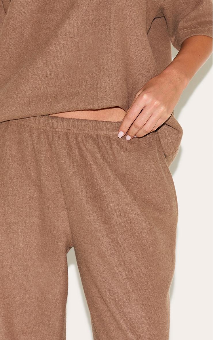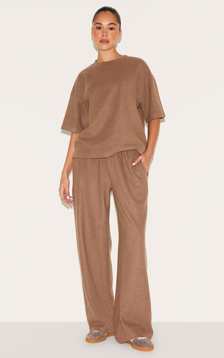 Consider these deep taupe soft touch wide leg sweatpants your new foundation piece for off-duty elevation. Crafted from a supremely soft fabrication, these sweatpants offer a sophisticated take on comfort dressing. The wide leg silhouette provides a contemporary edge, lending itself to both relaxed weekends and elevated errands. Style yours with a fitted bodysuit and chunky sneakers for an effortlessly cool aesthetic, or pair with tailored pants from our pants category for a sleek, modern approach to loungewear.Length approx 76cm/30inch (Based on sample size S)Model wears size SModel Height - 5ft 8inchp]:!mb-4inch>Brand: PrettyLittleThingCategory: AthleisureProduct type: Wide Leg JoggersColor: Deep TaupeMaterial: Rib KnitDesign: PlainOccasion: Day